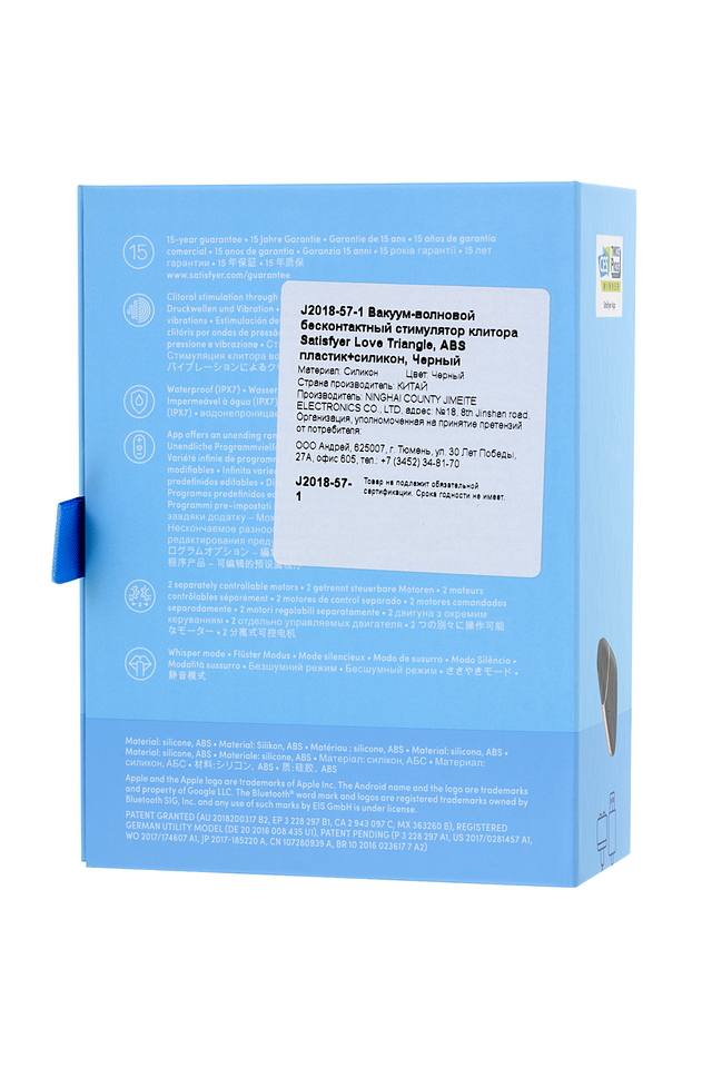 J2018-57-1 Вакуум-волновой бесконтактный стимулятор клитора Satisfyer Love Triangle, силикон, черный, 8,8 см.