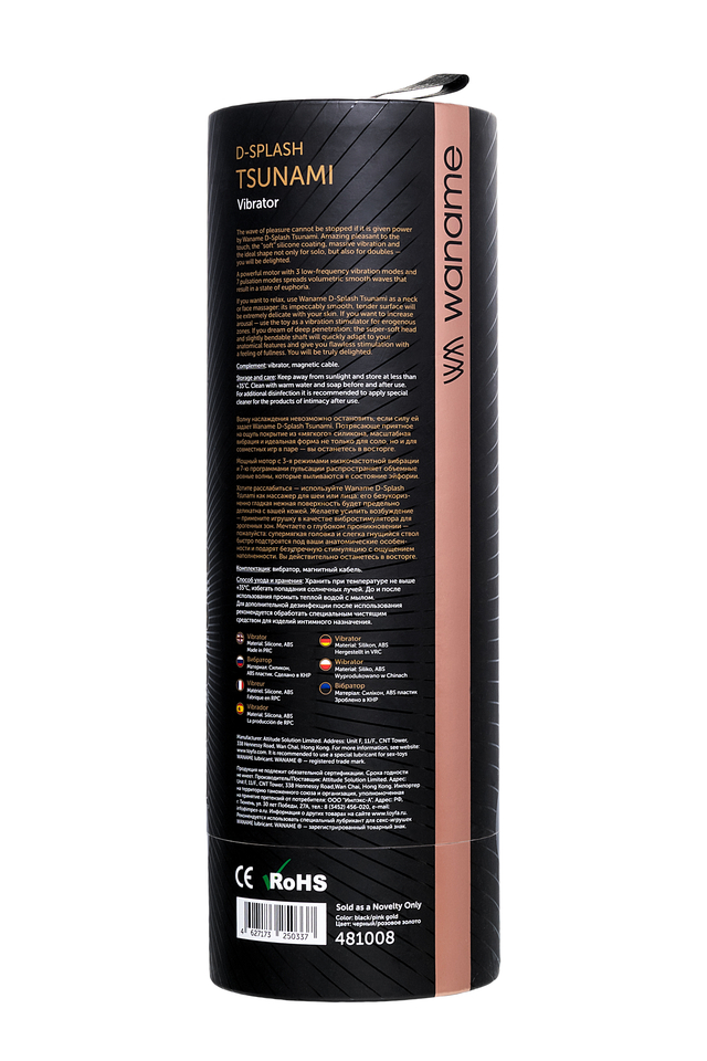 Волну наслаждения невозможно остановить, если силу ей задает Waname D-Splash Tsunami. Потрясающе приятное на ощупь покрытие из «мягкого» силикона, масштабная вибрация и идеальная форма не только для соло-, но и для совместных игр в паре — вы останетесь в восторге. Только представьте: волнующая прелюдия с партнером, заигрывающий эротический массаж или близкая к озарению стимуляция — в каждом из сценариев мощный мотор с 3-я режимами низкочастотной вибрации и 7-ю программами пульсации распространяет объемные ровные волны, которые выливаются в состояние эйфории. Хотите расслабиться — используйте Waname D-Splash Tsunami как массажер для шеи или лица: его безукоризненно гладкая нежная поверхность будет предельно деликатна с вашей кожей. Желаете усилить возбуждение — примените игрушку в качестве вибростимулятора для эрогенных зон. Мечтаете о глубоком проникновении — пожалуйста: супермягкая головка и слегка гнущийся ствол быстро подстроятся под ваши анатомические особенности и подарят безупречную стимуляцию с ощущением наполненности. Вы действительно останетесь в восторге. мягкая головка и слегка гнущийся ствол 3 режима вибрации + 7 программ пульсации интуитивно понятное управление ультранежная поверхность из мягкого «жидкого» силикона мощный мотор с низкочастотной вибрацией влагостойкий магнитная зарядка световая индикация работы игрушки над кнопками беспрерывная работа на самой большой скорости — 2 часа длина — 18,3 см, диаметр — 4,5 см