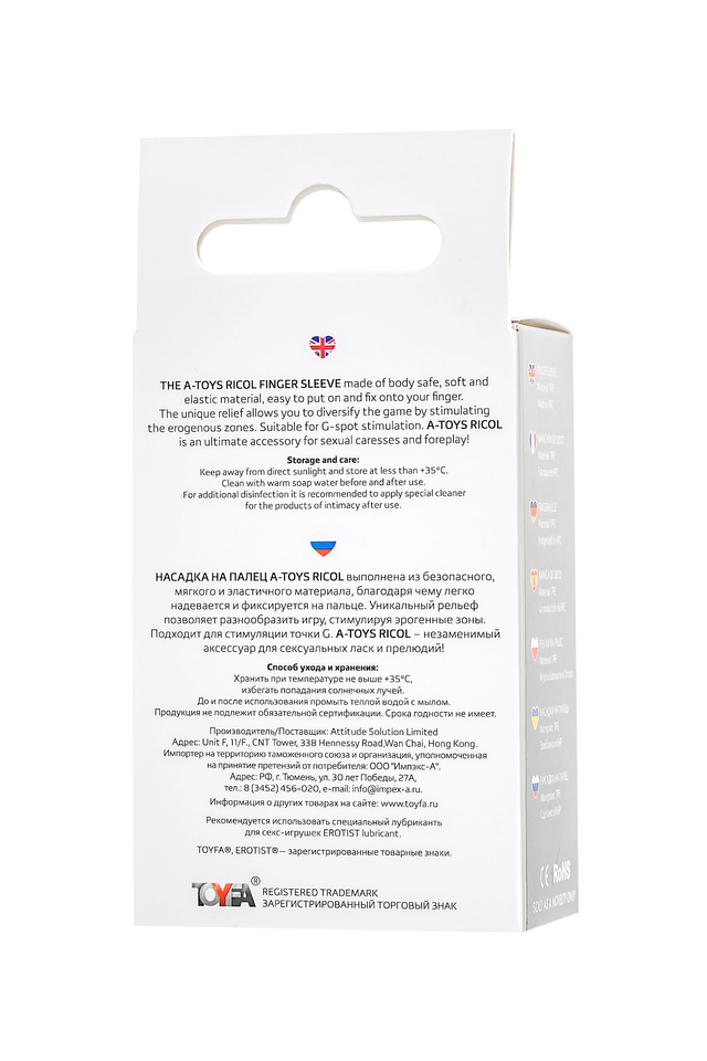 Насадка на палец A-Toys Ricol выполнена из безопасного, мягкого и эластичного материала, благодаря чему легко надевается и фиксируется на пальце. Уникальный рельеф позволяет разнообразить игру, стимулируя эрогенные зоны. Подходит для стимуляции точки G. A-Toys Ricol – незаменимый аксессуар для сексуальных ласк и прелюдий! Общий размер: 8 см