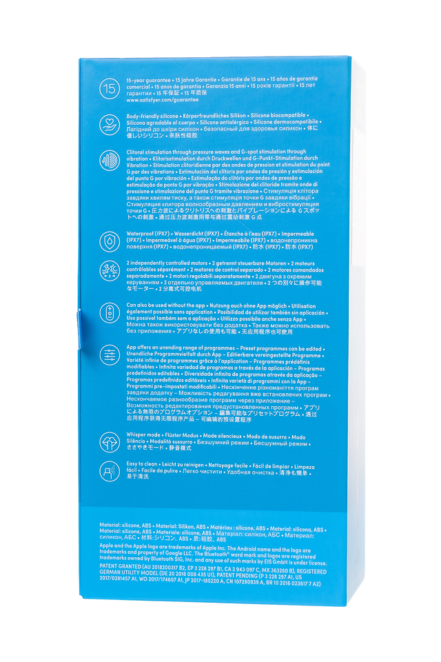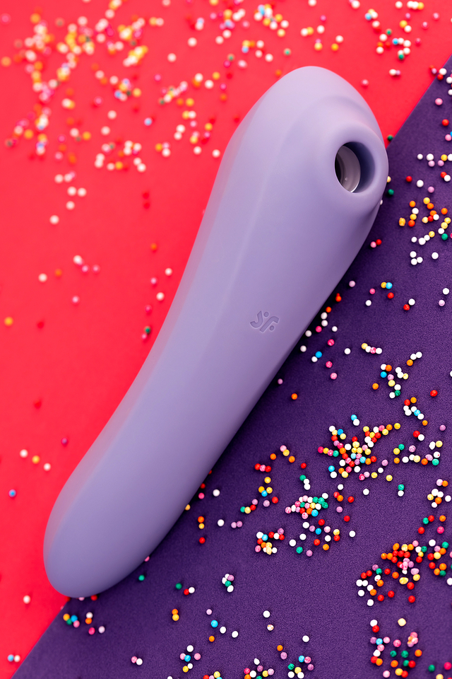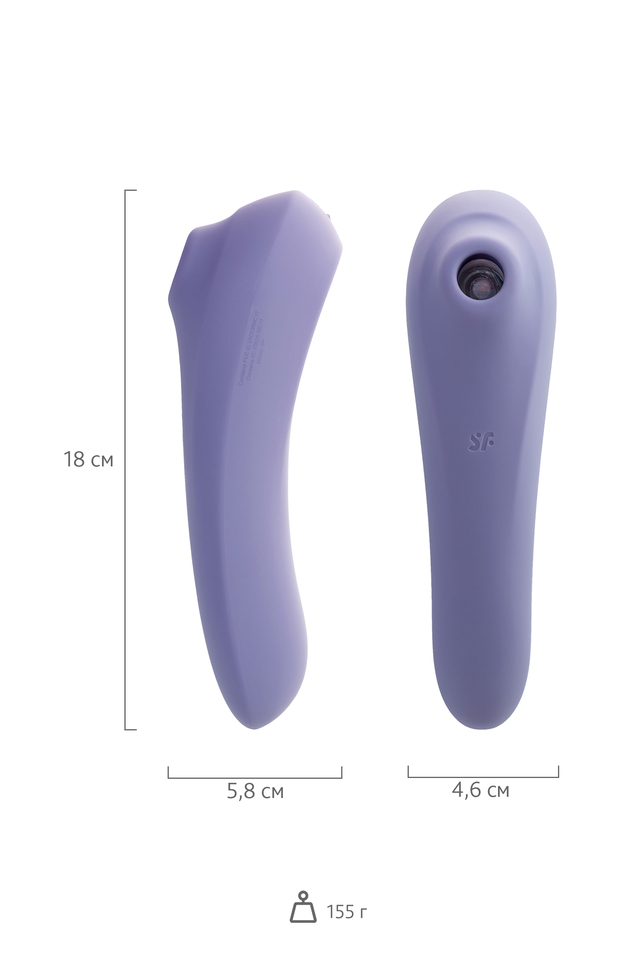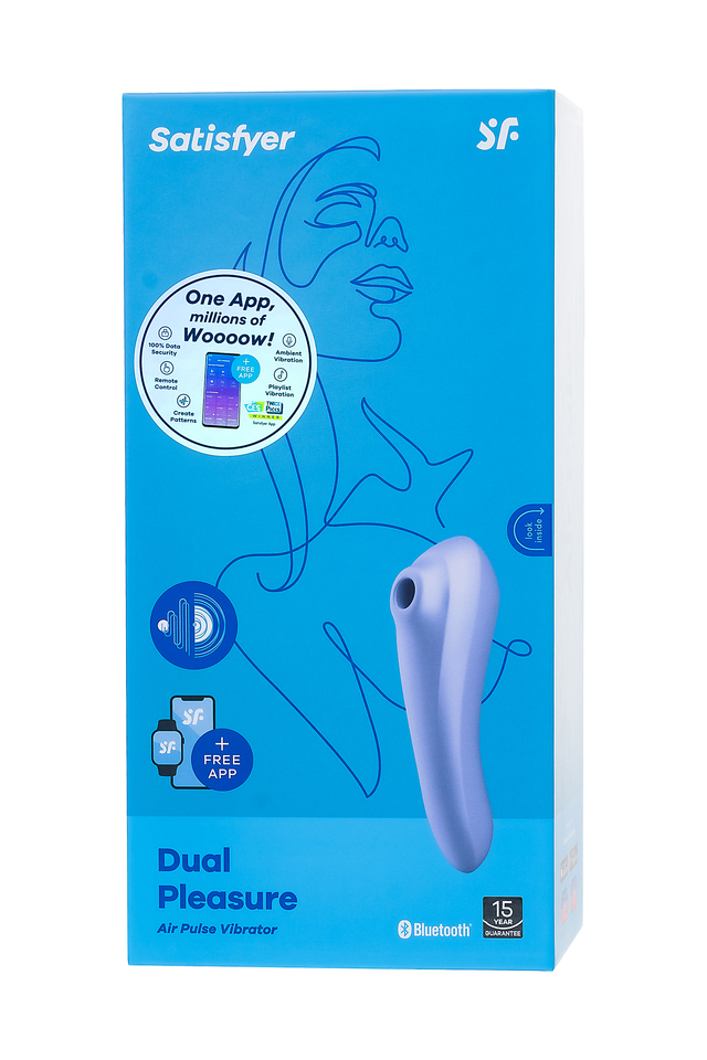 Вакуумно-волновой стимулятор Satisfyer Dual Pleasure имеет эргономичную форму, очень удобную для удержания в руке и не скользит. Девайс сочетает в себе интенсивную бесконтактную стимуляцию клитора под воздействием волны давления, а его другая сторона отлично создает чувственную вагинальную вибрацию и стимуляцию точки G, благодаря загнутой формы. Satisfyer Dual Pleasure имеет две функции: фирменная воздушно-волновая стимуляцию Satisfyer Air Pulse, а его другая сторона отлично создает чувственную вагинальную вибрацию. Вы можете перевернуть аксессуар и использовать рукоятку в роли вагинального вибратора. Управлять устройством очень просто. Верхняя кнопка отвечает за включение девайса и установку Bluetooth-соединения. Нижняя кнопка позволяет выбрать из 10 режимов вибрации, а средняя — переключить 11 режимов волновой стимуляции. Вакуумной стимуляцией и вибрацией можно управлять по отдельности. Независимо от того, какой вариант вы выберете, вам гарантированы незабываемые оргазмы, особенно благодаря ультрамягкой головке, которая очень нежно прижимается к клитору. Satisfyer Dual Pleasure может управляться при помощи смартфона через приложение Satisfyer Connect доступное на Android и iOS. Вы можете также проявить фантазию и создавать свои собственные, уникальные режимы стимуляции. Девайс поддерживает режим преобразования звуков в вибрацию, поэтому он способен вибрировать даже в такт музыке. Но и это не все - приложение для смартфона имеет функцию чата и даже позволяет передать управление игрушкой другому человеку дистанционно. Satisfyer Connect не имеет границ - в настоящее время поддерживается более 25 языков. Интегрированные функции чата / звонка и видеовызова гарантируют приятное интимное общение, к которому вы будьте готовы. Устройство полностью водонепроницаемо, поэтому с ним можно играть в ванной и душе. Чтобы получить максимум удовольствия и сохранить материал в наилучшем виде, рекомендуется пользоваться качественной смазкой на водной основе. После использования обязательно очищайте стимулятор теплой водой со специальными бактерицидными спреями для интимных товаров. Девайс работает от встроенного аккумулятора. Заряжается в течение 1,5 часов, а время работы от полного заряда составляет 1 час. Особенности: Управление через приложение или кнопками на самом устройстве. 10 режимов вибрации и 11 режимов волновой стимуляции. Изготовлена из мягкого, эластичного силикона без запаха, без аллергенов и вредных для здоровья веществ. 100% водонепроницаемый - IPX7. Время работы 1 час. Перезаряжаемый.