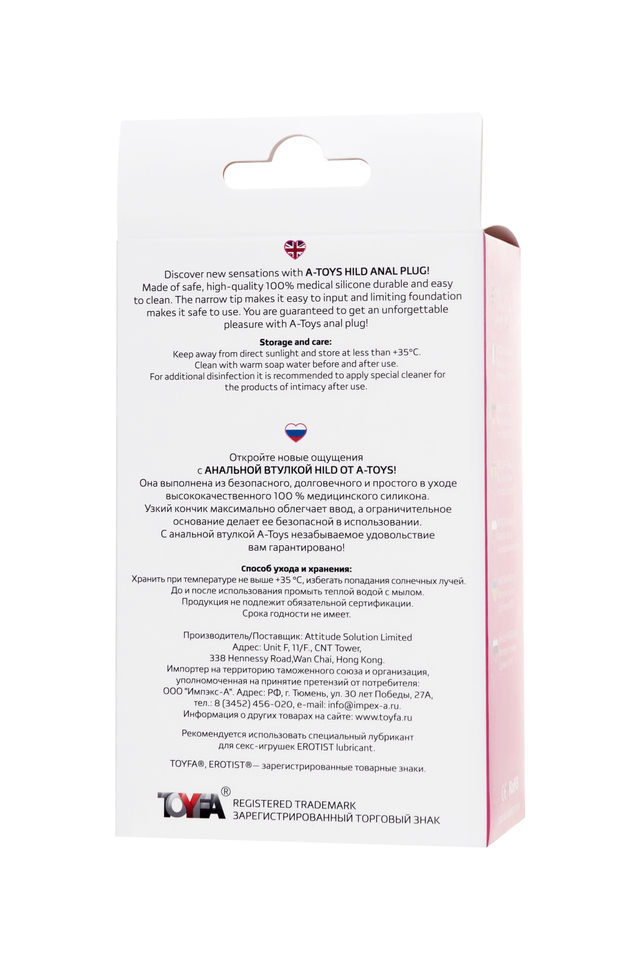 Откройте новые ощущения с анальной втулкой Hild от A-Toys! Она выполнена из безопасного, долговечного и простого в уходе высококачественного 100 % медицинского силикона. Узкий кончик максимально облегчает ввод, а ограничительное основание делает ее безопасной в использовании. С анальной втулкой A-Toys незабываемое удовольствие вам гарантировано! Общая длина – 11 см. Рабочая длина – 9,5 см. Диаметр – 0,9-2,2 см.