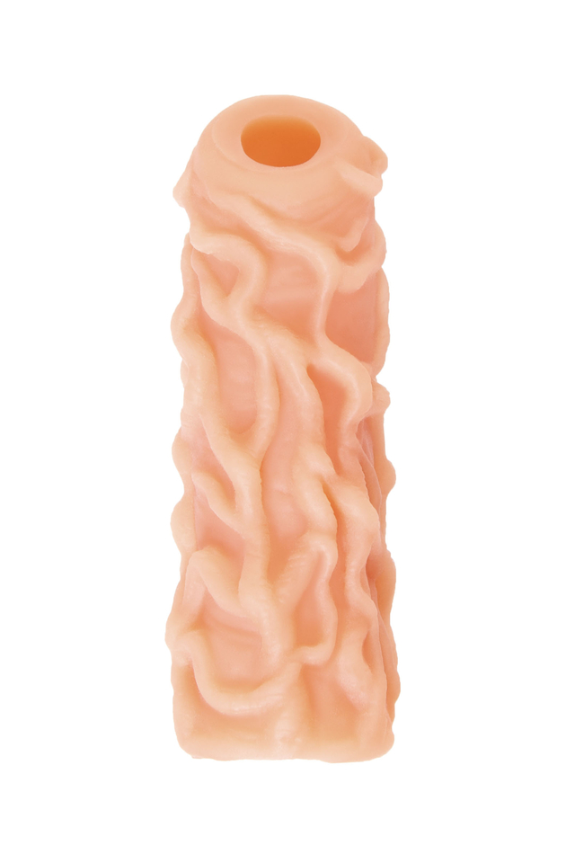 Открытая насадка с фантазийным рельефом от KOKOS предназначена воплотить фантазии о взаимном удовольствии. Реалистичная насадка на пенис - необходимый элемент для вашей сексуальной игры, если вы хотите максимально удовлетворить свою партнершу и сделать секс незабываемым. Откройте новые возможности: Увеличенный объем полового члена на 30% добавляет мужчине уверенности в своих сексуальных возможностях. Дополнительная стимуляция партнерши с помощью рельефа для яркого и насыщенного оргазма. Увеличение продолжительности полового акта у мужчины - задержка эякуляции, и наращивание темпа приближения оргазма у женщины. Насадка имеет форму “рукав”, плотно прилегает к пенису, создавая дополнительную толщину и оставляя головку открытой. Это позволяет сохранить чувствительность головки, задерживая эякуляцию. В основании есть отверстие для мошонки, с помощью которого вы надежно зафиксируете насадку на пенисе, не ограничиваясь в активных движениях. Насадка, за счет плотного облегания мошонки и головки, усиливает эрекцию. Ярко выраженный рельеф в виде многочисленных выпуклых вен по всему стволу насадки очень хорошо стимулирует зону G, вход во влагалище и настойчиво ласкает чувствительные зоны. Вариативность стимуляции регулируется активным темпом движения вперед-назад и изменением угла проникновения. Дополнительный объем дарит то самое чувство наполненности, увеличивая поток возбуждения. Мужчина тоже будет ощущать стимуляцию за счет давления стенок влагалища на пенис. Супер эластичный материал быстро принимает температуру тела, отлично тянется, сохраняя при этом прочность. Нежное и мягкое покрытие такое же приятное на ощупь, как и человеческая кожа. Насадка сделана из высококачественного безвредного для человеческого организма материала, который прошел необходимые тестирования и сертификацию. Долговечность использования при соблюдении правил хранения и ухода за насадкой. Используйте с насадкой лубрикант только на водной основе. Длина: 12 см Диаметр: 4,0 см Размер: M Цвет: телесный Материал: TPE Страна бренда KOKOS: Корея