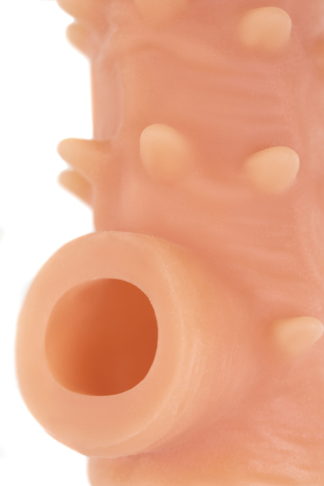Открытая насадка с фантазийным рельефом от KOKOS предназначена воплотить фантазии о взаимном удовольствии. Реалистичная насадка на пенис - необходимый элемент для вашей сексуальной игры, если вы хотите максимально удовлетворить свою партнершу и сделать секс незабываемым. Откройте новые возможности: Увеличенный объем полового члена на 30% добавляет мужчине уверенности в своих сексуальных возможностях. Дополнительная стимуляция партнерши с помощью рельефа для яркого и насыщенного оргазма. Увеличение продолжительности полового акта у мужчины - задержка эякуляции, и наращивание темпа приближения оргазма у женщины. Насадка имеет форму “рукав”, плотно прилегает к пенису, создавая дополнительную толщину и оставляя головку открытой. Это позволяет сохранить чувствительность головки, задерживая эякуляцию. В основании есть отверстие для мошонки, с помощью которого вы надежно зафиксируете насадку на пенисе, не ограничиваясь в активных движениях. Насадка, за счет плотного облегания мошонки и головки, усиливает эрекцию. Ярко выраженный рельеф в виде многочисленных выпуклых вен и мягких шипов по всему стволу насадки стимулирует зону G, вход во влагалище и настойчиво ласкает чувствительные зоны. Дополнительный объем дарит то самое чувство наполненности, увеличивая поток возбуждения. Мужчина тоже будет ощущать стимуляцию за счет давления стенок влагалища на пенис. Супер эластичный материал быстро принимает температуру тела, отлично тянется, сохраняя при этом прочность. Нежное и мягкое покрытие такое же приятное на ощупь, как и человеческая кожа. Насадка сделана из высококачественного безвредного для человеческого организма материала, который прошел необходимые тестирования и сертификацию. Долговечность использования при соблюдении правил хранения и ухода за насадкой. Используйте с насадкой лубрикант только на водной основе. Длина: 14 см Диаметр: 4,4 см Размер: L Цвет: телесный Материал: TPE Страна бренда KOKOS: Корея