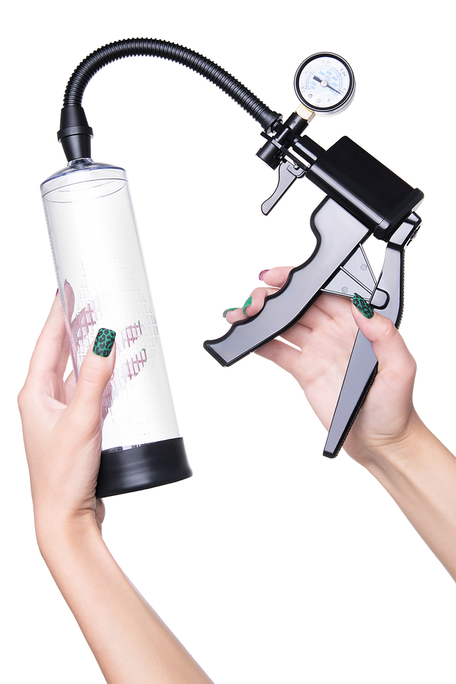 Гарант сексуального могущества для мужчины не только крепкая и надежная эрекция, но и внушительный размер орудия. Для тех, кто стремится достичь впечатляющих результатов в области увеличения размеров пениса, рекомендуется механическая помпа Viggo от Sexus® Men. С помпой Viggo серии Sexus® Men Training легко управлять своими тренировками по пенбилдингу, усиливать эрекцию и получать новые ощущения от полового акта. Для тренировки, а также чтобы подготовить себя к длительному и яркому сексу, вставьте свой пенис в колбу и откачайте воздух с помощью рычага с пистолетной рукояткой. Благодаря отрицательному давлению увеличивается приток крови к половому члену, за уровнем давления удобно следить с помощью встроенного манометра. Прозрачный ABS-пластик позволяет наблюдать как пенис набирает силу и увеличивается в размере. Отслеживайте результаты прямо в процессе с помощью измерительной шкалы. Для достижения ощутимых результатов рекомендуются систематические занятия по программе эффективного тренинга, которая входит в комплект. Регулярное использование вакуумной помпы Viggo от Sexus® Men позволяет: последовательно увеличить длину и диаметр полового члена, делая его более внушительным сделать эрекцию более стабильной, крепкой и продолжительной повысить сексуальную выносливость и половое влечение поднять уверенность в своих возможностях и совершать новые сексуальные подвиги понизить вероятность образований аномальных фиброзных тканей Помпа Viggo комплектуется удобным большим рычагом с пистолетной рукояткой для разрежения воздуха, механическим манометром, клапаном для быстрого сброса давления и программой для эффективных тренировок. Гофрированный шланг, силиконовая насадка, качественные материалы – все вместе это делает использование помпы Viggo не только безопасным, но и комфортным!