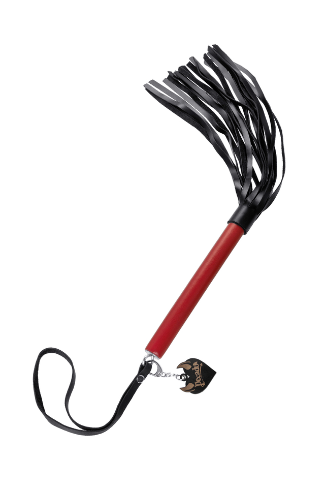 05211 Плеть Pecado BDSM, красная рукоять, чёрные хлысты, натуральная кожа