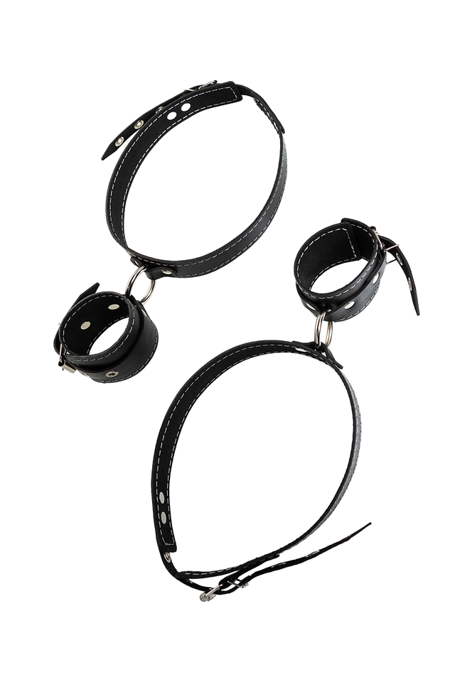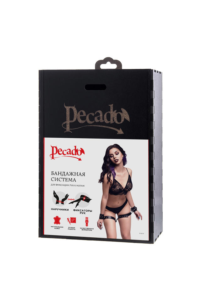 01512 Бондажная система Pecado BDSM, для фиксации рук к ногам, натуральная кожа, черная