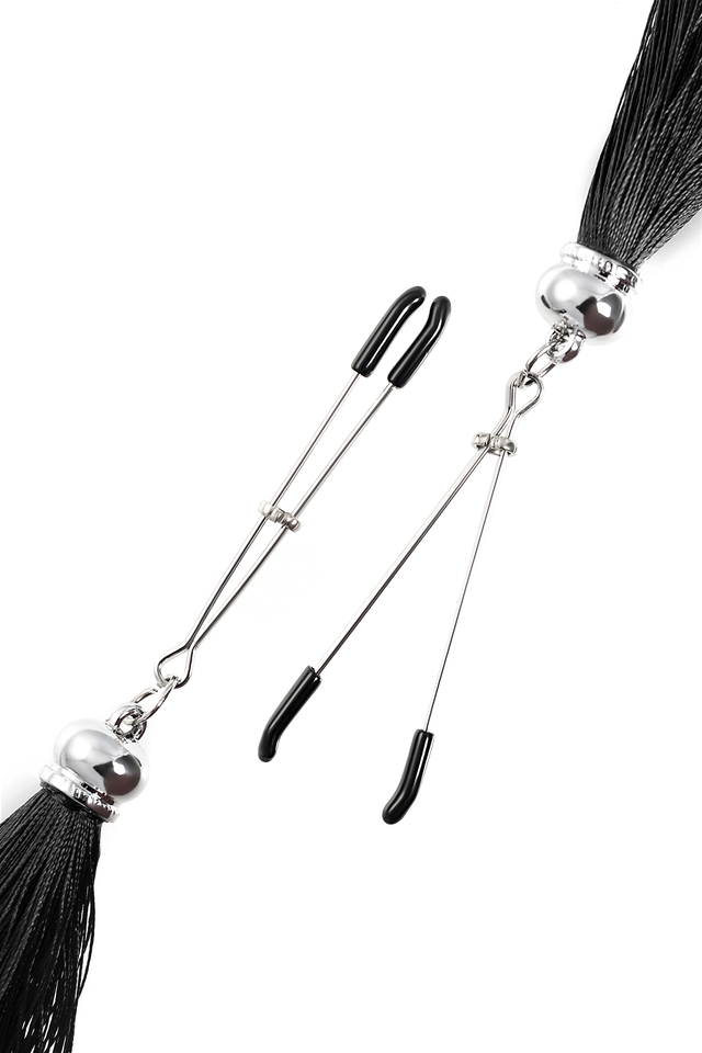 09411 Зажимы на соски Pecado BDSM, «Вилки», с кисточками из шелка, металл, черные