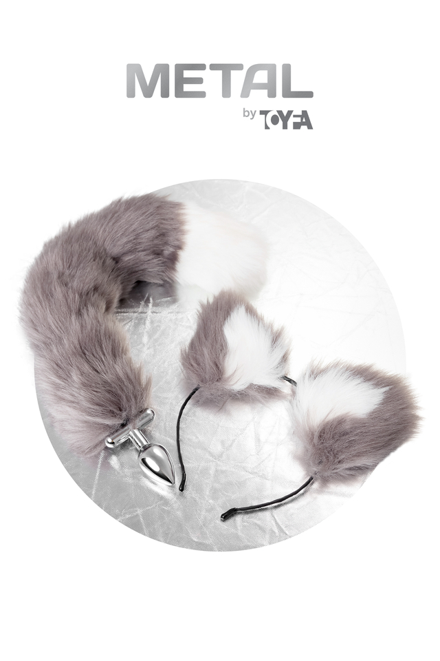 712030 Анальная втулка с хвостом и ушки Metal by Toyfa, металл, серебристая, 44,4 см