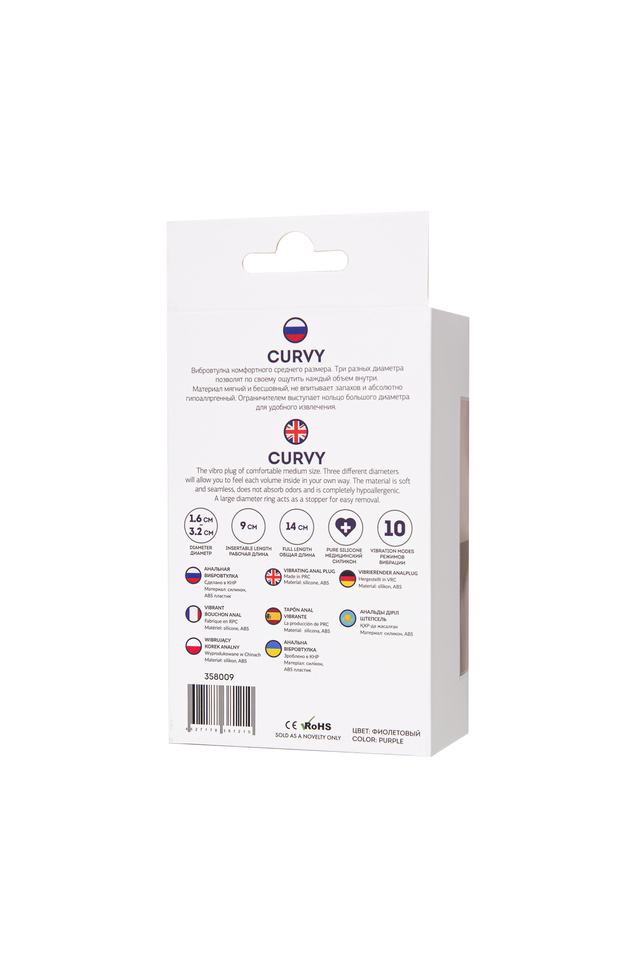 Curvy Вибровтулка комфортного среднего размера. Три разных диаметра позволит по своему ощутить каждый объем внутри. Материал мягкий и бесшовный, не впитывает запахов и абсолютно гипоаллргенный. Ограничителем выступает кольцо большого диаметра для удобного извлечения. 10 режимов вибрации, съёмная вибропуля.