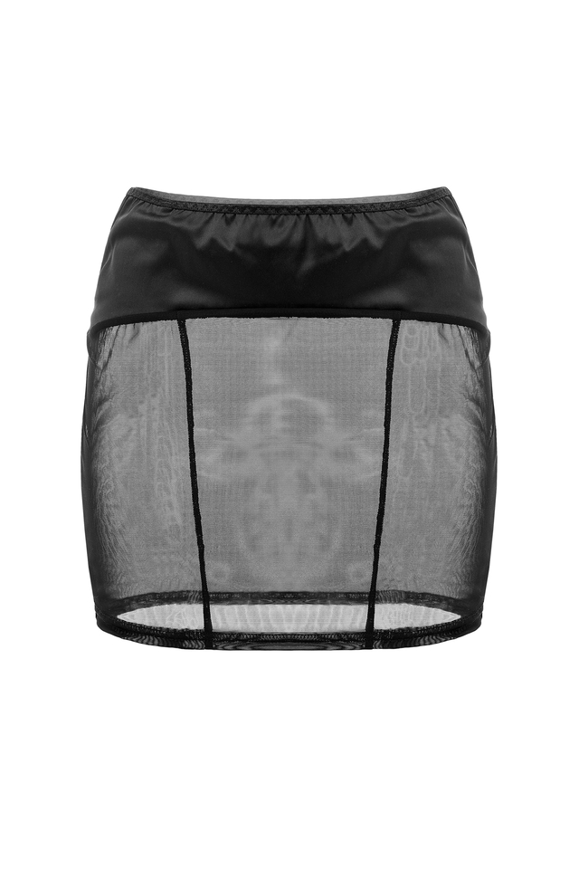 Линия провокационного эротического белья WANAME® Apparel – для женщин, которые хотят наслаждения и не скрывают этого. Юбка «И́вэнэс» (англ. Evenness – «Плавность») из тонкой прозрачной эластичной сетки и стрейч-сатина облегает бедра, ощущается невесомой, не сковывают движений, но визуально меняет силуэт. Шелковистая поверхность материала дарит приятные ощущения при прикосновении. Современные элементы дизайна тешат женское самолюбие. Матовая кокетка и аккуратный вырез сзади подчеркивают движение бедер при каждом шаге. Провокационная длина слегка прикрывает ягодицы. Интимные зоны, закрытые для прикосновений, но доступные взгляду подчеркивают чувственность образа. Модели белья Waname® Apparel эксклюзивны, разработаны и произведены в России с учетом предпочтений российских покупательниц. *На фото и видео юбка Waname® Evenness дополнена браллетом Waname® Delicacy.