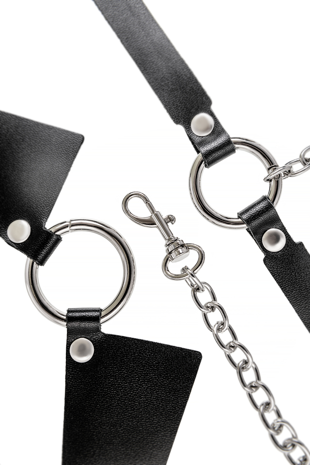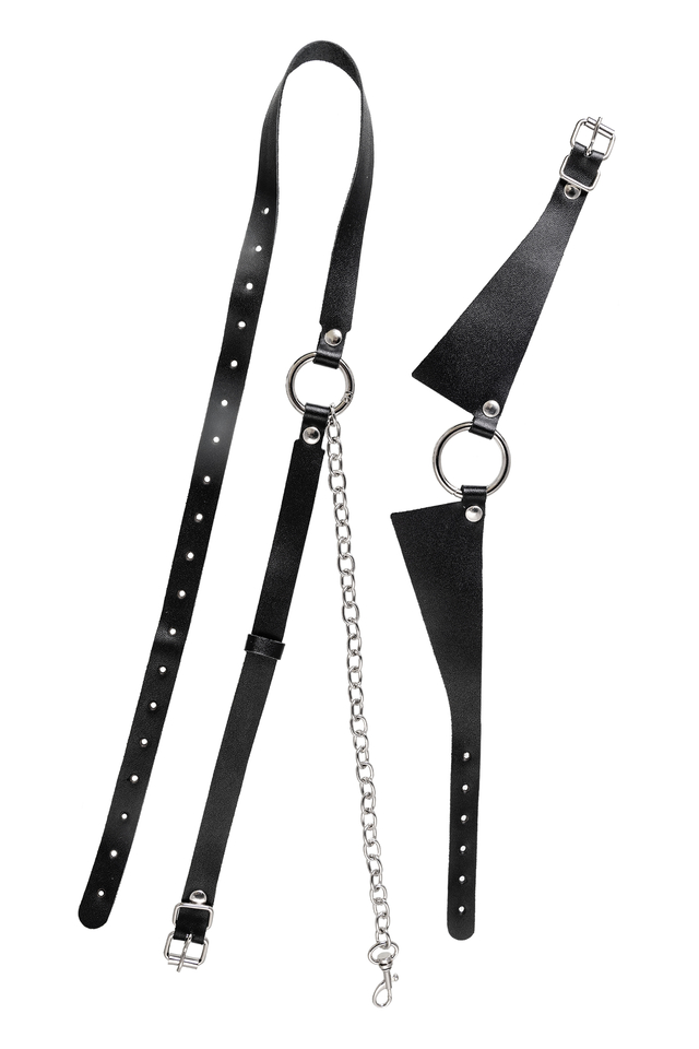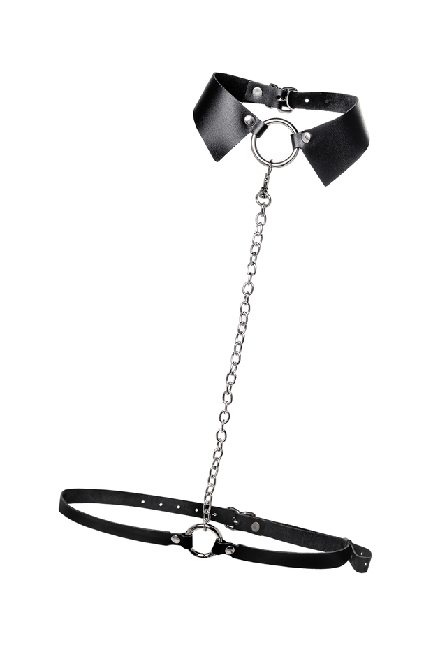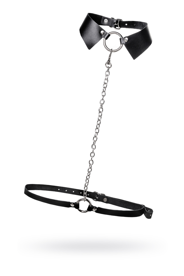 10714 Портупея-чокер-ошейник Pecado BDSM, с поводком и карабином в виде кольца, натуральная кожа, чёрная