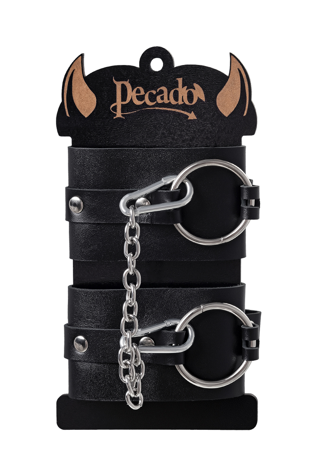 02201 Оковы Pecado BDSM, из толстой кожи с люверсами, натуральная кожа, чёрные