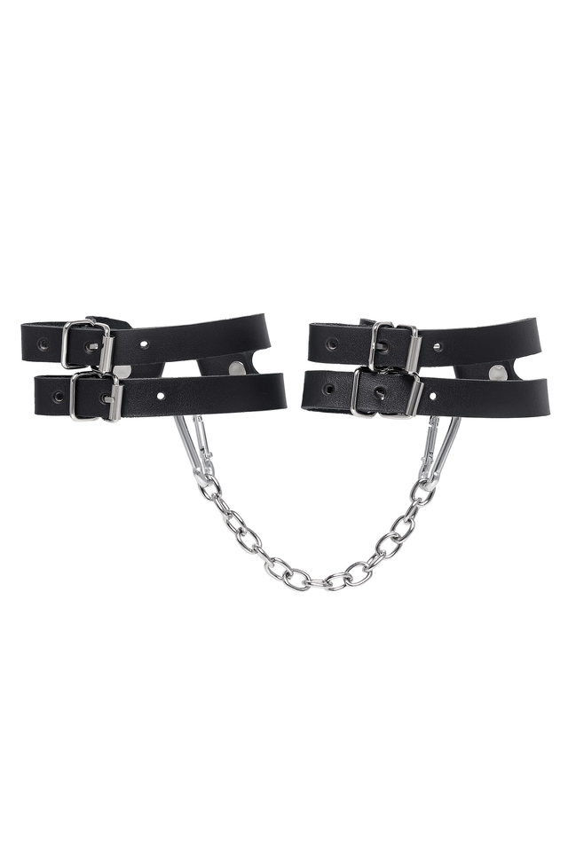 02206 Оковы Pecado BDSM, из двух ремешков, натуральная кожа, чёрные