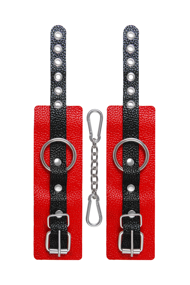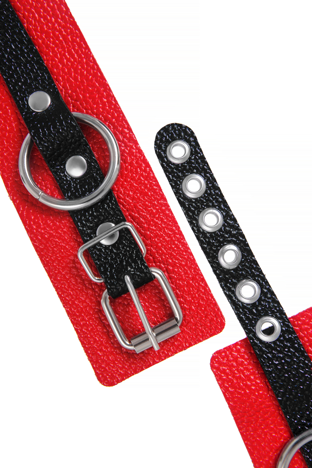 02198 Наручники Pecado BDSM, мягкие с одним ремешком с люверсами, натуральная кожа, красно-чёрные