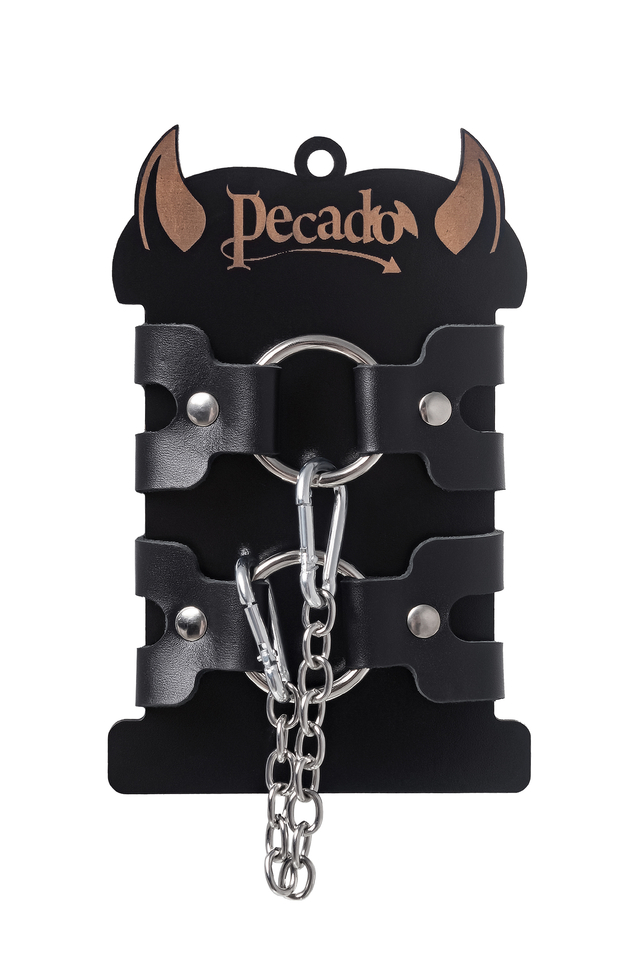 Эти наручники-браслеты от Pecado – пикантная смесь брутальности и лаконичного дизайна. Данная модель - не просто девайс для ролевых игр, но и стильное украшение на руку. Наручники изготовлены из экологичной, прочной, натуральной кожи. Материал износостойкий, тактильно приятный. Благодаря качественной металлофурнитуре, аксессуар надежно фиксируется. Не расстегивается при активном использовании в процессе игр. Манжеты соединены между собой с помощью двух карабинов и короткой цепочки. При необходимости, можно использовать как более длинные цепи, так и другие аксессуары. Подходит для пар, которые только познают азы БДСМ-культуры, а также более опытным ценителям жестких игр. Погрузитесь в мир особых чувств и желаний! Вместе с Pecado. ● 100% натуральная кожа. ● Ручная работа. ● Износостойкий, тактильно приятный материал. ● Надежная высококачественная фурнитура. ● Универсальный размер. ● Длина ремешков 1 – 12 см, длина ремешков 2 - 8 см, ширина ремешков- 1,6 см, длина сцепки – 24 см.