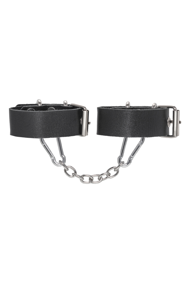 Брутальные наручники из одного ремешка от Pecado – отличный подарок партнеру к любому случаю. Во-первых, они незаменимая вещь для жестких ролевых игр. Во-вторых, отличный аксессуар-браслет на руку для повседневного и тематического look-а. Сексуальный атрибут изготовлен российским производителем. Специальная технология выделки кожи обеспечивает хорошую износостойкость. Черный материал прекрасно прилегает к телу и не оставляет следов. Подходят и мужчинам, и женщинам. Наручники декорированы большими стальными кольцами. Металлическая фурнитура высокого качества обеспечивает надежную фиксацию. Манжеты фиксируются между собой благодаря съемной, короткой цепочке. При желании ее можно заменить на другой необходимый аксессуар. ● 100% натуральная кожа. ● Ручная работа. ● Износостойкий, тактильно приятный материал. ● Надежная высококачественная фурнитура. ● Универсальный размер. ● Длина ремешка – 23,5 см, ширина ремешка - 2,5 см, длина сцепки – 14 см.