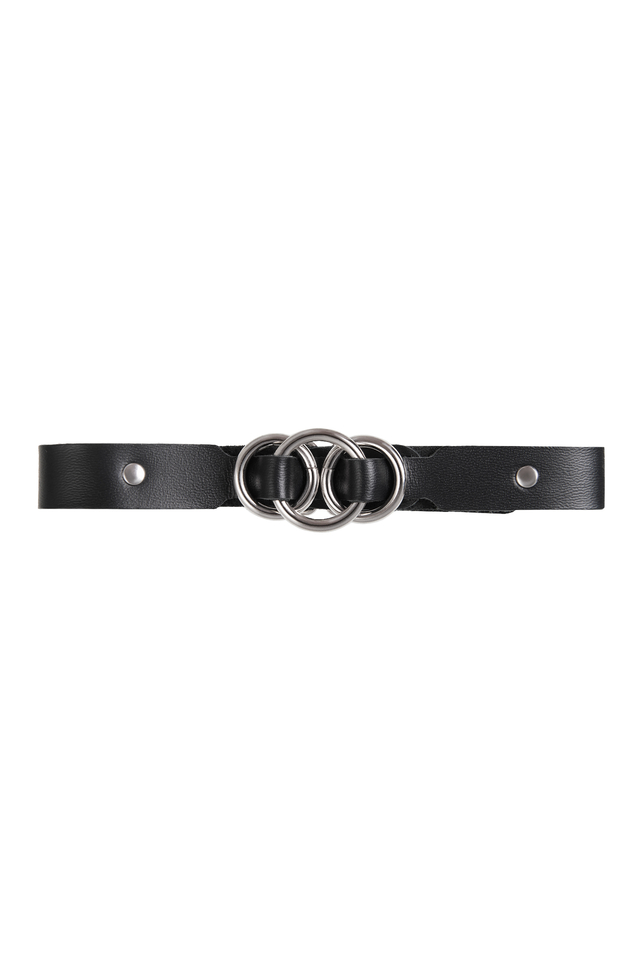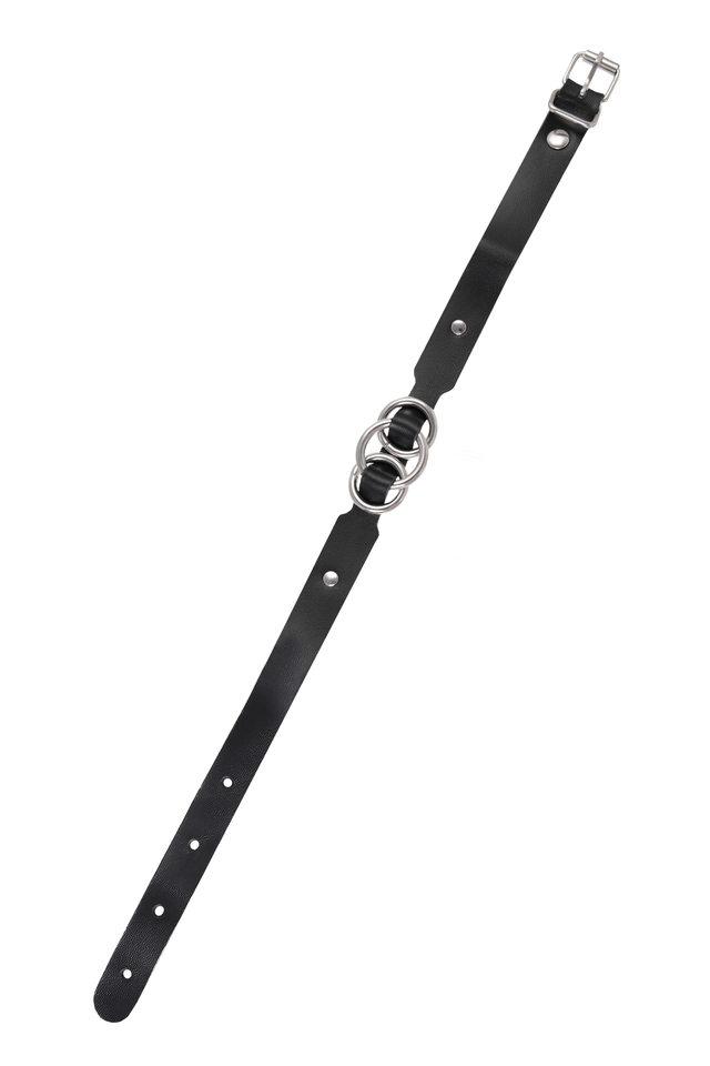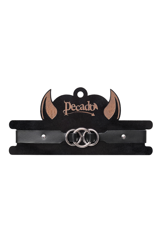 03119 Чокер-ошейник Pecado BDSM, со связанными кольцами, натуральная кожа, чёрный
