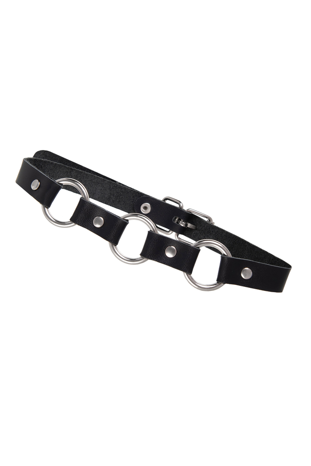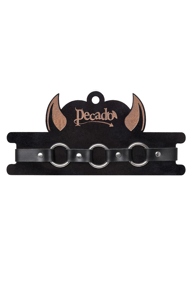 03121 Чокер-ошейник Pecado BDSM, с кольцами в виде цепочки, натуральная кожа, чёрный