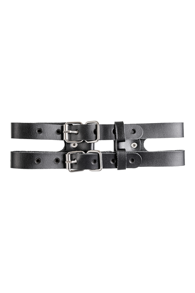03123 Чокер-ошейник Pecado BDSM, из двух ремешков, натуральная кожа, чёрный