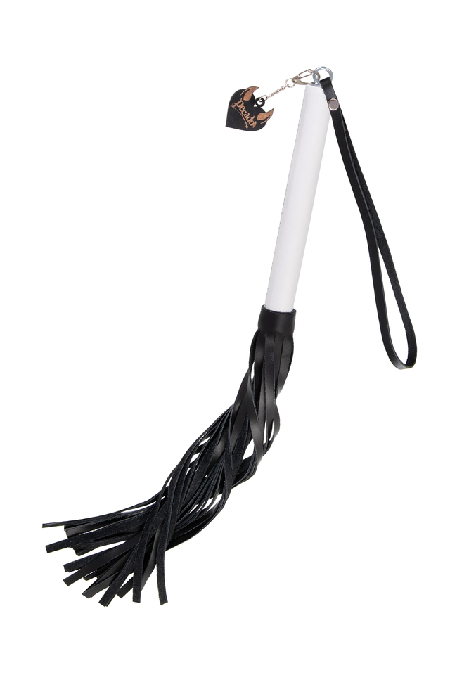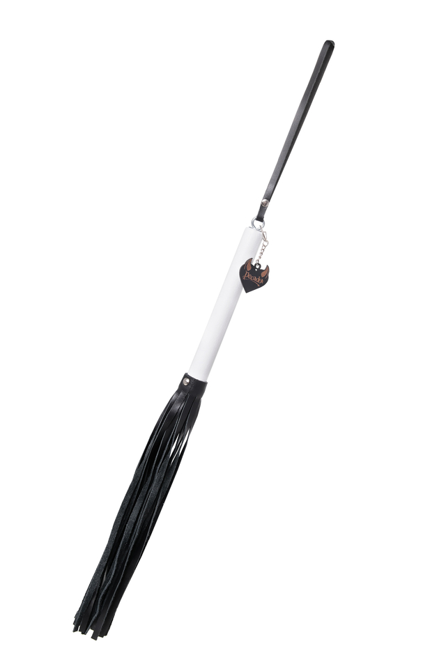 05121 Плеть Pecado BDSM, белая рукоять, чёрные хлысты, натуральная кожа