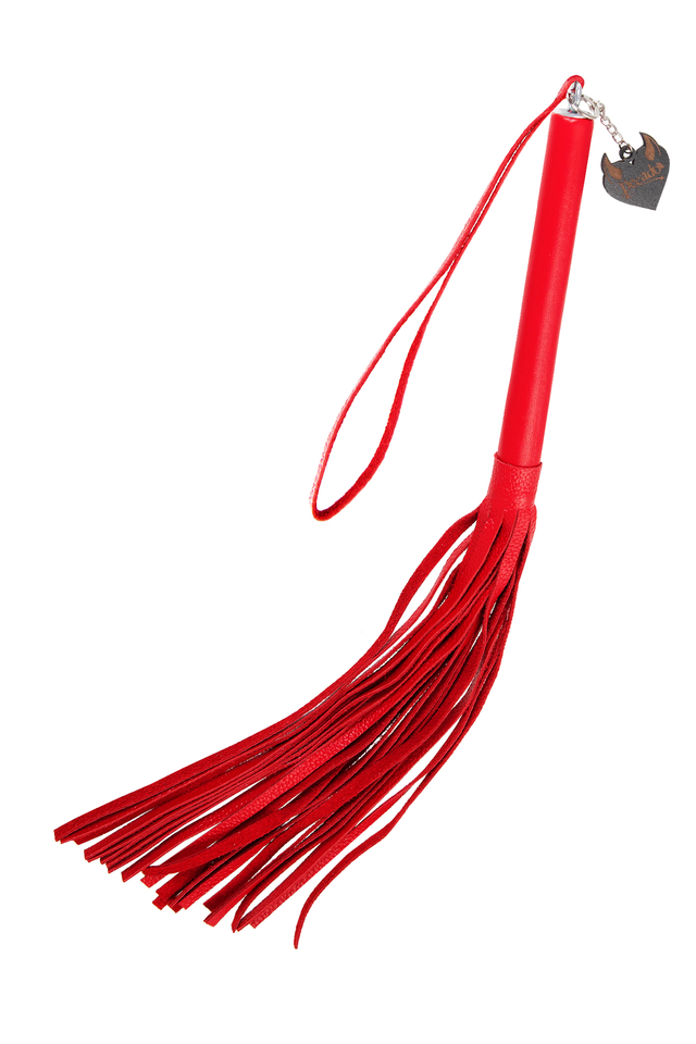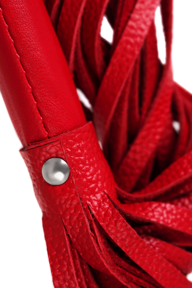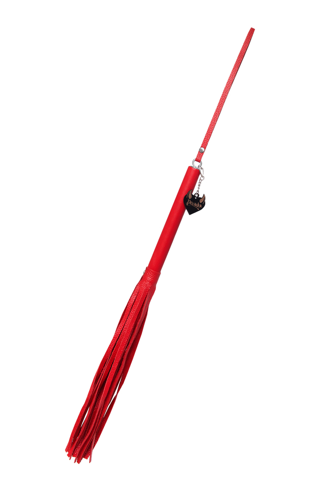 05124 Плеть Pecado BDSM, красная рукоять, красные хлысты, натуральная кожа
