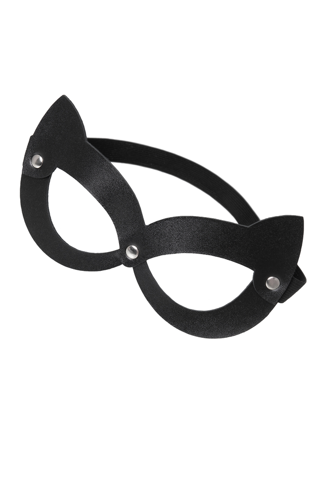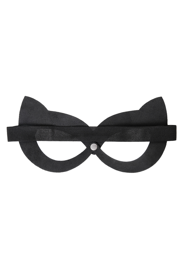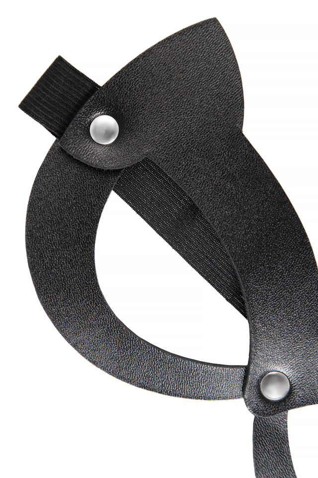 07511 Маска Pecado BDSM, с ушками кошки открытая, натуральная кожа, чёрная