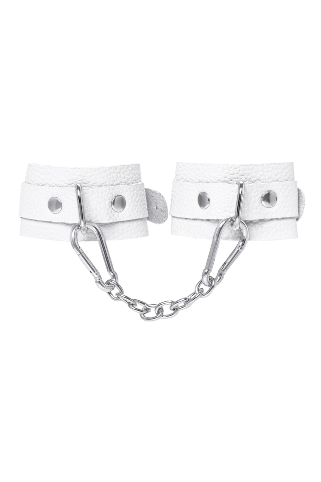 02223 Наручники-браслеты Pecado BDSM, мини со скруглёнными углами, натуральная кожа, белые