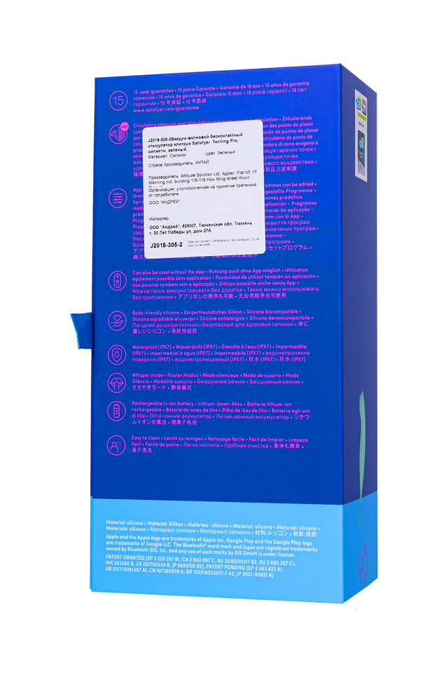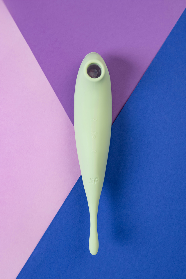 Нежнейшая клиторальная стимуляция и дразняще-вибрирующий наконечник: знакомьтесь, это новинка от Satisfyer двусторонний Twirling pro. С одной стороны игрушки раструб для клитора, воздействующий на сокровенное воздушными волнами. Twirling pro обладает 11 режимами интенсивности, по которым как по ступенькам вы пройдете от чувственных ласк до умопомрачительного оргазма. С другой стороны удлиненный кончик совершает циркулирующие точечные движения в разнообразных паттернах вибрации, которых имеется 12 режимов. Деликатное воздействие на все известные и еще неизвестные эрогенные зоны обеспечивает овальная форма упругого наконечника. Легкие щекочущие ощущения или максимально интенсивные прикосновения, которые вам предстоит испытать на пути неземного блаженства. Twirling pro обладает двумя мощными надежными моторами, работающими отдельно друг от друга. Продолговатая каплевидная форма игрушки благодаря изгибам удобно лежит в руке. Интуитивно понятное управление тремя кнопками прямо на корпусе игрушки продуманы и ложатся точно под пальчики. Интимный гаджет поддерживает управление при помощи смартфона через приложение Satisfyer Connect, доступное на Android и iOS, что существенно расширяет возможности предустановленных режимов. Вы можете также проявить фантазию и создавать свои собственные, уникальные режимы стимуляции. Девайс поддерживает режим преобразования звуков в вибрацию, поэтому он способен вибрировать даже в такт музыке. Но и это не все - приложение для смартфона имеет функцию чата и даже позволяет передать управление игрушкой другому человеку дистанционно. Satisfyer Connect не имеет границ – в настоящее время поддерживается более 25 языков. Интегрированные функции чата / звонка и видеовызова гарантируют приятное интимное общение. Шелковистое силиконовое покрытие — фирменный знак Satisfyer, тактильно нежный и приятный на ощупь. Twirling pro позаботится о самых чувственных прикосновениях даже в ванной и душе. Благодаря водонепроницаемости IPX7 игрушку можно погружать под воду до 30 минут. Чтобы получить максимум удовольствия и сохранить материал в наилучшем виде, рекомендуется пользоваться качественной смазкой на водной основе. После использования обязательно очищайте стимулятор теплой водой со специальными бактерицидными спреями для интимных товаров. Особенности: Вибрирующий наконечник для точечной стимуляции эрогенных зон и раструб с воздушной пульсацией для клитора. Простое управление отдельными моторами двумя кнопками. 12 режимов вибрации и 11 режимов волновой стимуляции. Нежный мятный цвет и мягкий, эластичный силикон без запаха, без аллергенов и вредных для здоровья веществ. 100% водонепроницаемый - IPX7. Время работы 60 минут. Перезаряжаемый, магнитный USB-кабель, время зарядки 240 минут. 15 лет гарантии от производителя.