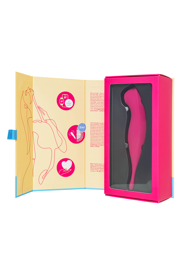 Нежнейшая клиторальная стимуляция и дразняще-вибрирующий наконечник: знакомьтесь, это новинка от Satisfyer двусторонний Twirling pro. С одной стороны игрушки раструб для клитора, воздействующий на сокровенное воздушными волнами. Twirling pro обладает 11 режимами интенсивности, по которым как по ступенькам вы пройдете от чувственных ласк до умопомрачительного оргазма. С другой стороны удлиненный кончик совершает циркулирующие точечные движения в разнообразных паттернах вибрации, которых имеется 12 режимов. Деликатное воздействие на все известные и еще неизвестные эрогенные зоны обеспечивает овальная форма упругого наконечника. Легкие щекочущие ощущения или максимально интенсивные прикосновения, которые вам предстоит испытать на пути неземного блаженства. Twirling pro обладает двумя мощными надежными моторами, работающими отдельно друг от друга. Продолговатая каплевидная форма игрушки благодаря изгибам удобно лежит в руке. Интуитивно понятное управление тремя кнопками прямо на корпусе игрушки продуманы и ложатся точно под пальчики. Интимный гаджет поддерживает управление при помощи смартфона через приложение Satisfyer Connect, доступное на Android и iOS, что существенно расширяет возможности предустановленных режимов. Вы можете также проявить фантазию и создавать свои собственные, уникальные режимы стимуляции. Девайс поддерживает режим преобразования звуков в вибрацию, поэтому он способен вибрировать даже в такт музыке. Но и это не все - приложение для смартфона имеет функцию чата и даже позволяет передать управление игрушкой другому человеку дистанционно. Satisfyer Connect не имеет границ – в настоящее время поддерживается более 25 языков. Интегрированные функции чата / звонка и видеовызова гарантируют приятное интимное общение. Шелковистое силиконовое покрытие — фирменный знак Satisfyer, тактильно нежный и приятный на ощупь. Twirling pro позаботится о самых чувственных прикосновениях даже в ванной и душе. Благодаря водонепроницаемости IPX7 игрушку можно погружать под воду до 30 минут. Чтобы получить максимум удовольствия и сохранить материал в наилучшем виде, рекомендуется пользоваться качественной смазкой на водной основе. После использования обязательно очищайте стимулятор теплой водой со специальными бактерицидными спреями для интимных товаров. Особенности: Вибрирующий наконечник для точечной стимуляции эрогенных зон и раструб с воздушной пульсацией для клитора. Простое управление отдельными моторами двумя кнопками. 12 режимов вибрации и 11 режимов волновой стимуляции. Сочный бордовый цвет и мягкий, эластичный силикон без запаха, без аллергенов и вредных для здоровья веществ. 100% водонепроницаемый - IPX7. Время работы 60 минут. Перезаряжаемый, магнитный USB-кабель, время зарядки 240 минут. 15 лет гарантии от производителя.