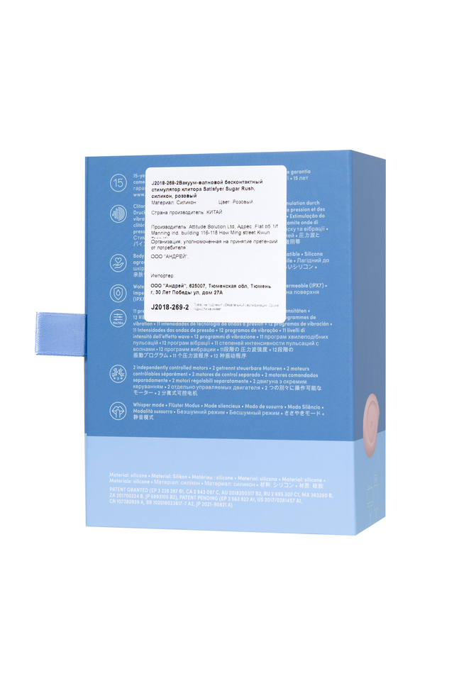 Несмотря на милый дизайн этот Sugar Rush от Satisfyer в форме ракушки способен порадовать сокровенное невероятными посасывающими ласками и возбуждающими волнами вибрации. Сладостные минуты удовольствия обеспечены вам, если у вас в руках этот клиторальный стимулятор. С одной стороны имеется раструб, который балует вашу жемчужинку воздушной пульсацией, превосходящей любые оральные ласки. Бесконтактная стимуляция клитора – новейшая запатентованная технология Air Pulse для женских оргазмов. Sugar Rush обладает двумя автономными моторами. Комбинируйте воздушную пульсацию и проникающие волны вибрации, чтобы достигать неземного блаженства каждый раз. В вашем распоряжении 11 уровней интенсивности вакуум-волновой стимуляции и 12 программ вибрации – от нежной до интенсивной. Интуитивно понятное управление с помощью трех выпуклых кнопок на корпусе. Стимулятор-ракушка удобно располагается в ладони. Благодаря нежному материалу, из которого выполнен Sugar Rush, вам будет комфортно и приятно держать его в руках и получать удовольствие от его вибрации и пульсации. Потрясающий шелковистый на ощупь высококачественный гипоаллергенный силикон – визитная карточка бренда Satisfyer. Поверхность раструба мягко и деликатно стимулирует клиторальную область, тактильно нежный и приятный на ощупь, силикон быстро адаптируется к температуре вашего тела. Идеальный размер, чтобы брать любимый стимулятор в дорогу. Стильный и качественный гаджет создан для эстетического и сексуального удовольствия. Sugar Rush легко составит вам компанию в водных процедурах. Благодаря водонепроницаемости принятие ванны или душа станет особенно ярким впечатлением. Чтобы получить максимум удовольствия и сохранить материал в наилучшем виде, рекомендуется пользоваться качественной смазкой на водной основе. После использования обязательно очищайте игрушку теплой водой со специальными бактерицидными спреями для интимных товаров. Особенности: Возможность одновременного воздействия на клитор воздушной пульсацией и вибрацией Оригинальный дизайн, форма и размер Управление кнопками на корпусе. 12 режимов вибрации и 11 режимов волновой стимуляции. Нежно-розовый цвет и мягкий, эластичный силикон без запаха, без аллергенов и вредных для здоровья веществ. Идеальный вариант для первой игрушки, подарка и путешествий. 100% водонепроницаемый - IPX7. Время работы 60 минут. Перезаряжаемый, USB-кабель, время зарядки 3 часа.