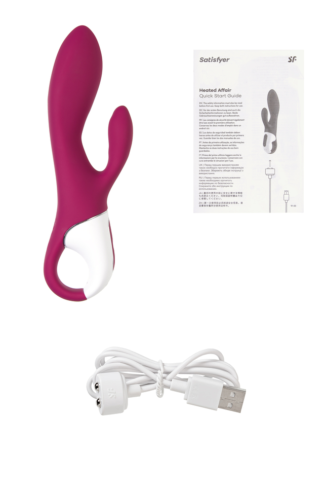 Согревающий вибратор-кролик 2 в 1 Heated Affair от Satisfyer соблазняет сочетанием вибрации и тепла. Головка вагинального отростка оснащена функцией реалистичного нагрева до 39°C, что усиливает стимуляцию точки G приятным теплом. Волнующее тепло возбуждает и усиливает приток крови к эрогенной зоне, а стимуляция вибрацией усиливает яркий оргазм. Форма Heated Affair имеет приятный размер: диаметр головки 3,7 см – это дарит приятное ощущение заполненности. Его узкий изогнутый ствол и закругленный кончик позволяют целенаправленно стимулировать зону G. Гибкий клиторальный отросток идеально ложится на клитор. Ручка-кольцо позволяет уверенно держать игрушку в самых разнообразных позициях и при любой интенсивности движений. Очаровательный Heated Affair обладает 2 мощными моторами в стволе и клиторальном отростке. Вибрация и тепло стимулируют зону G и клитор, пробуждая волны наслаждения и приближая к гарантированному оргазму. Игрушка имеет 12 предустановленных режимов вибрации и управляется не только с кнопок на ручке вибратора. Испытайте удовольствие по-настоящему с бесплатной функцией управление при помощи смартфона с поддержкой Bluetooth через приложение Satisfyer Connect, доступное на Android и iOS. Создавайте собственные уникальные режимы вибрации, существенно расширив возможности предустановленных режимов. Девайс способен вибрировать даже в такт музыке. Satisfyer Connect не имеет границ – передавайте управление удовольствием партнеру даже на большом расстоянии. Плавные изгибы обеспечивают легкое проникновение. Шелковистое силиконовое покрытие — фирменный знак Satisfyer, тактильно нежный и приятный на ощупь, он быстро адаптируется к температуре вашего тела. Чтобы получить максимум удовольствия и сохранить материал в наилучшем виде, рекомендуется пользоваться качественной смазкой на водной основе. После использования обязательно очищайте вибратор теплой водой со специальными бактерицидными спреями для интимных товаров. Особенности: Функция нагрева до 39°C, обеспечивающая реалистичную и пикантную стимуляцию зоны G. Двойная стимуляция клитора и зоны G. Удобная ручка-кольцо и эргономичная форма. 12 режимов вибрации и неограниченное количество режимов в приложении Satisfyer Connect с подключением через Bluetooth. Сочный ягодный цвет и мягкий, эластичный силикон без запаха, без аллергенов и вредных для здоровья веществ. Водонепроницаемый (IPX7) Время работы 50 минут. Перезаряжаемый, магнитный USB-кабель, время зарядки 3 часа.