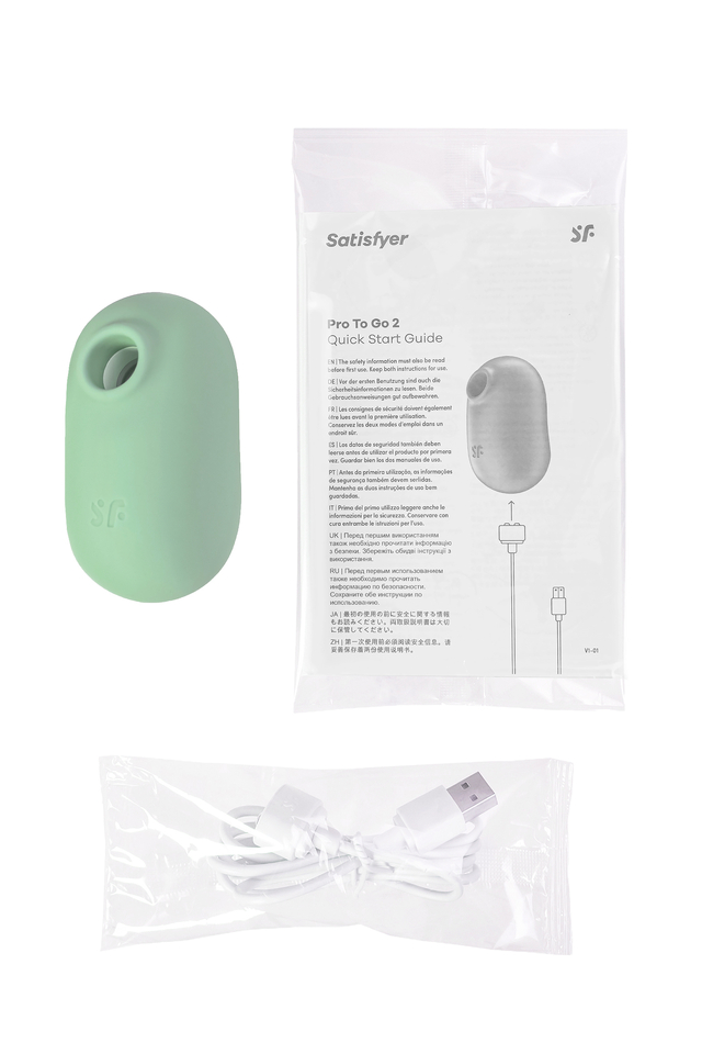 Satisfyer Pro To Go 2 – двойной стимулятор клитора, с которым легко совершать эксперименты в области получения оргазмов. Компактный Pro To Go 2 готов радовать вас наружной стимуляцией клитора с помощью двух автономных моторов. Комбинируйте воздушную пульсацию и проникающие волны вибрации, чтобы достигать неземного блаженства каждый раз. Бесконтактная стимуляция клитора – новейшая запатентованная технология Air Pulse для женских оргазмов. В вашем распоряжении 11 уровней интенсивности вакуум-волновой стимуляции и 12 программ вибрации – от нежной до интенсивной. Интуитивно понятное управление с помощью трех кнопок на корпусе. Satisfyer Pro To Go 2 – особый вид удовольствия, который понравится как искушенным пользователям, так и новичкам. Стимулятор имеет овальную эргономичную форму, которая позволяет ему удобно располагаться в руках. Благодаря нежному силикону, вам будет комфортно держать его в руках и получать удовольствие от вибрации и пульсации. Идеальный размер, чтобы брать любимый стимулятор в дорогу. Стильный и качественный гаджет создан для эстетического и сексуального удовольствия. Потрясающий шелковистый на ощупь высококачественный гипоаллергенный силикон – визитная карточка бренда Satisfyer. Поверхность раструба мягко и деликатно стимулирует клиторальную область, тактильно нежный и приятный на ощупь, силикон быстро адаптируется к температуре вашего тела. Чтобы получить максимум удовольствия и сохранить материал в наилучшем виде, рекомендуется пользоваться качественной смазкой на водной основе. После использования обязательно очищайте игрушку теплой водой со специальными бактерицидными спреями для интимных товаров. Водонепроницаемый корпус побуждает воспользоваться стимулятором в душе и ванной, чтобы по-новому ощутить импульсы своего тела. Особенности: Возможность одновременного воздействия на клитор воздушной пульсацией и вибрацией Управление кнопками на корпусе. 12 режимов вибрации и 11 режимов волновой стимуляции. Нежный мятный цвет и мягкий, эластичный силикон без запаха, без аллергенов и вредных для здоровья веществ. Идеальный вариант для первой игрушки, подарка и путешествий. 100% водонепроницаемый - IPX7.