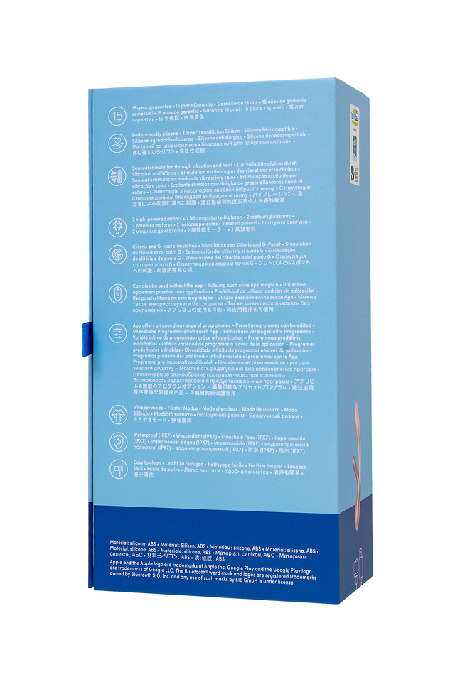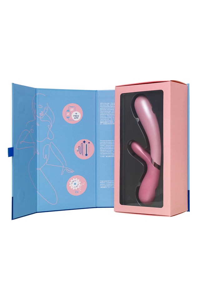 Классический вибратор-кролик в ультрасовременном дизайне порадует чем-то новеньким. Hot Lover Connect App от Satisfyer соблазняет не только двойной стимуляцией клитора и зоны G. Погружная часть оснащена функцией реалистичного нагрева до 39°C, что усиливает стимуляцию точки G приятным теплом. Классическая форма имеет приятный размер и подходит большинству женщин. Изогнутая форма вагинального отростка длиной 12 см и диаметром 3,2 см имеет утолщение в кончике и прицельно ласкает зону G вибрацией и теплом. Гибкий клиторальный отросток обеспечивает точную стимуляцию клитора. 2 независимых мощных мотора в стволе и гибком отростке, пробуждают волны наслаждения и развивают чувствительность. Вариативность использования радует разнообразием. Нагрев, клиторальный и вагинальный отросток могут работать независимо друг от друга. Игрушка имеет 10 предустановленных режимов вибрации и управляется не только с кнопок на ручке вибратора. Испытайте удовольствие по-настоящему с бесплатной функцией управление при помощи смартфона с поддержкой Bluetooth через приложение Satisfyer Connect, доступное на Android и iOS. Создавайте собственные уникальные режимы вибрации, существенно расширив возможности предустановленных режимов. Девайс способен вибрировать даже в такт музыке. Satisfyer Connect не имеет границ – передавайте управление удовольствием партнеру даже на большом расстоянии. Плавные изгибы и эргономичная форма обеспечивают легкое проникновение. Hot Lover удобно лежит в руке благодаря длинной ручке. Шелковистое силиконовое покрытие — фирменный знак Satisfyer, тактильно нежный и приятный на ощупь, он быстро адаптируется к температуре вашего тела. Мерцающая розовая поверхность и сверкающая деталь в середине делают Hot Lover настоящей изюминкой. Чтобы получить максимум удовольствия и сохранить материал в наилучшем виде, рекомендуется пользоваться качественной смазкой на водной основе. После использования обязательно очищайте вибратор теплой водой со специальными бактерицидными спреями для интимных товаров. Особенности: Функция нагрева до 39°C, обеспечивающая реалистичную и пикантную стимуляцию зоны G. 2 автономных мотора и независимое управление нагревом 12 режимов вибрации и неограниченное количество режимов в приложении Satisfyer Connect с подключением через Bluetooth. Благородный современный дизайн и нежный, эластичный силикон без запаха, без аллергенов и вредных для здоровья веществ. Водонепроницаемый (IPX7) Перезаряжаемый, магнитный USB-кабель.