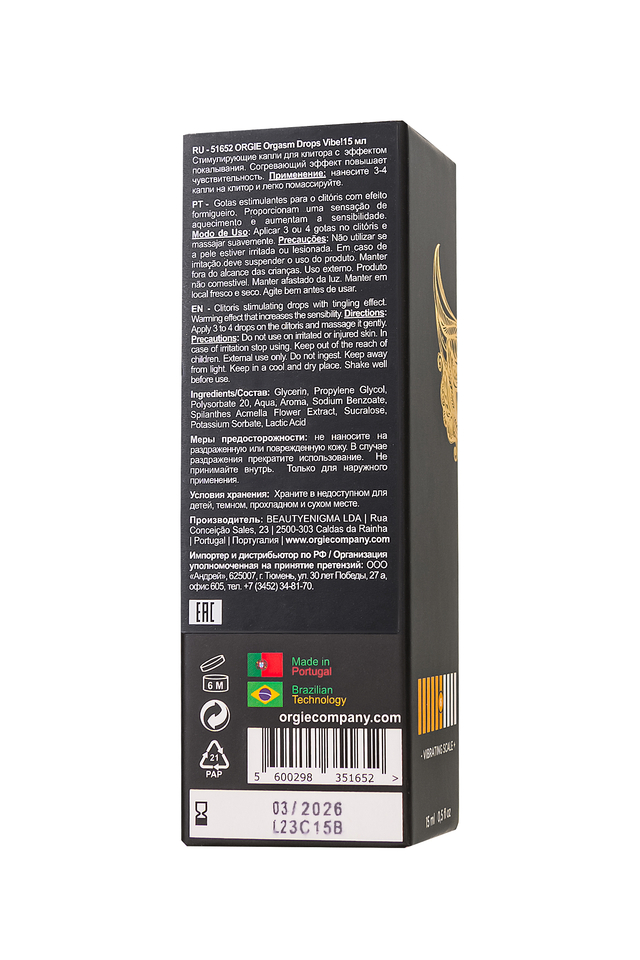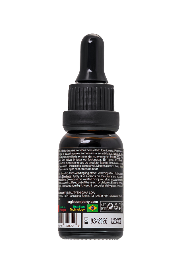 Возбуждающий гель для клитора с эффектом вибрации Orgasm Drops Vibe приглашает вас в захватывающий мир удовольствия! Этот гель – ваш таинственный союзник, готовый оживить первозданную страсть и привести к вихрю удовольствия. Каждая капля этого геля превращает клитор в зону чувствительности, пробуждает первые приятные ощущения, сменяющиеся нежным теплом. И здесь вступает в игру новый элемент – интригующая вибрация. Ощутите мгновенный пульсирующий эффект, знакомый по продуктам Orgie Sexy Vibe, который подарит вам бесконечные волнения удовольствия. Как использовать капли Orgasm Drops Vibe? Просто нанесите 2 или 3 капли непосредственно на клитор, проведите нежный массаж и дайте несколько минут волшебству раскрыться. Легкое охлаждение вначале, затем нежное согревание и внезапная вибрация – это ваш путь к нирване удовольствия. Для более деликатного воздействия не превышайте дозировку - 1 капля. Orgie уважает ваши чувства и комфорт, и поэтому рекомендует начинать знакомство с продуктом с одной капли. Роскошный стеклянный флакон с капельницей позволяет контролировать расход средства. Объем 15 мл рассчитан приблизительно на 75 доз. Функциональность этого геля уникальна. Он делает клитор чувствительным, пробуждает ощущения согревания и охлаждения, предоставляя вам момент вибрирующего блаженства. Откройте дверь к новым сексуальным горизонтам с Orgasm Drops Vibe!