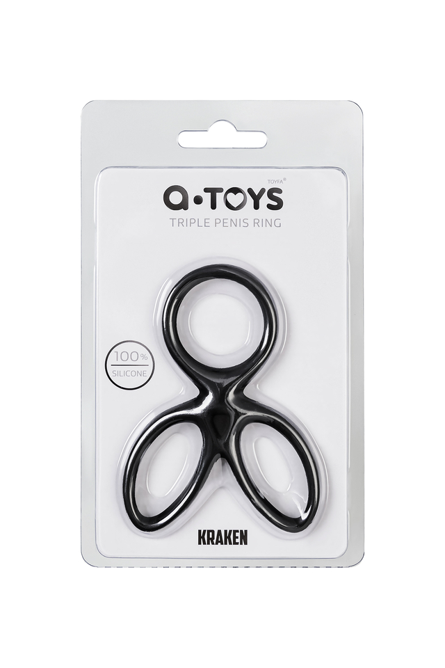 768038 Тройное кольцо на пенис A-TOYS KRAKEN, силикон, черный, 10 см