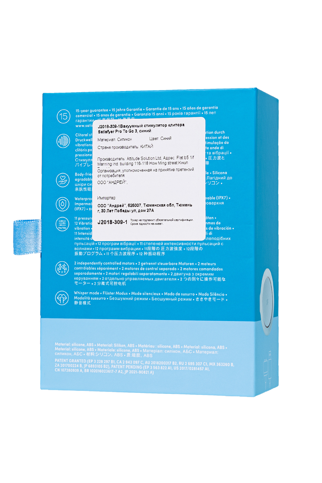 Один из самых стильных любовников для чувственных оргазмов – Pro To Go 3 от Satisfyer в нежно голубом цвете и дизайне, далеком от классических интимных игрушек. Компактный вибратор для наружной стимуляции клитора обладает двумя автономными моторами. Комбинируйте воздушную пульсацию и проникающие волны вибрации, чтобы достигать неземного блаженства каждый раз. Бесконтактная стимуляция клитора – новейшая запатентованная технология Air Pulse для женских оргазмов. В вашем распоряжении 11 уровней интенсивности вакуум-волновой стимуляции и 12 программ вибрации – от нежной до интенсивной. Интуитивно понятное управление с помощью трех кнопок на корпусе. Стильный дизайн Pro To Go 3 напоминает компактную пудреницу или гаджет для красоты, и превосходно лежит в ладони. При этом вибрация в корпусе значительно менее ощутима, чем в основной контактной части. Идеальный размер и форма, чтобы брать любимый стимулятор в дорогу. Стильный и качественный гаджет создан для эстетического и сексуального удовольствия. Потрясающий шелковистый на ощупь высококачественный гипоаллергенный силикон – визитная карточка бренда Satisfyer. Поверхность раструба мягко и деликатно стимулирует клиторальную область. Тактильно нежный и приятный на ощупь силикон быстро адаптируется к температуре вашего тела. Чтобы получить максимум удовольствия и сохранить материал в наилучшем виде, рекомендуется пользоваться качественной смазкой на водной основе. После использования обязательно очищайте вибратор теплой водой со специальными бактерицидными спреями для интимных товаров. Благодаря водонепроницаемости дарить себе удовольствие можно даже принимая ванну или душ. Особенности: Возможность одновременного воздействия на клитор воздушной пульсацией и вибрацией Управление кнопками на корпусе. 12 режимов вибрации и 11 режимов волновой стимуляции. Нежный голубой цвет и мягкий, эластичный силикон без запаха, без аллергенов и вредных для здоровья веществ. 100% водонепроницаемый - IPX7. Перезаряжаемый, USB-кабель.