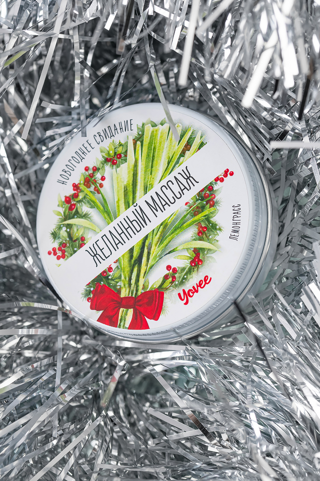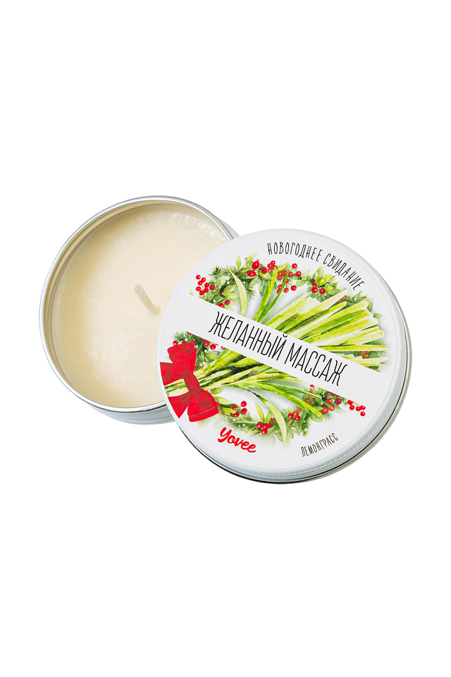 Массажная свеча Yovee «Желанный массаж» с афродизиаком «Лемонграсс» - изысканный аксессуар для новогоднего свидания. Изготовлена из 100% натуральных масел, которые питают, увлажняют, смягчают кожу и делают её шелковистой. Сочный цитрусовый аромат остается легким шлейфом, напоминая о проведенных минутах блаженства. Благодаря праздничному дизайну упаковки свеча отлично подходит в качестве презента. Основа свечи - гидрогенизированное соевое масло, которое идеально смешивается с уходовыми и эфирным маслами, а при комнатной температуре приобретает плотность воска. При горении свечи твердый воск расплавляется в тёплое массажное масло, не обжигающее кожу. Уходовые масла: пальмовое, кокосовое и масло виноградной косточки - многофункциональны. Пальмовое масло помогает справиться с авитаминозом кожи, дарит приятное увлажнение и свежесть, смягчает огрубевшую и шелушащуюся кожу, помогает справиться с возрастными изменениями. Кокосовое масло придает коже бархатистость, защищает, смягчает, разглаживает. Масло виноградной косточки повышает тургор, эластичность и упругость кожи, стимулирует выработку коллагена и эластина, ускоряет процесс регенерации кожного покрова. Эфирное масло лемонграсса выступает не только ухаживающим компонентом, но и афродизиаком. Сочный цитрусовый аромат с дымной ноткой поднимает настроение, справляется с апатией. Предназначена для наружного применения. Не содержит парафина. Не подходит для ароматизации помещения, использования в качестве лубриканта. Применение: зажгите свечу до массажа, когда образуется достаточное количество масла, потушите её. Проверьте температуру масла на внутренней стороне ладони, при необходимости дайте маслу слегка остыть. Нанесите на тело и массирующими движениями распределите по телу. Наслаждайтесь тонким ароматом и бархатной кожей!