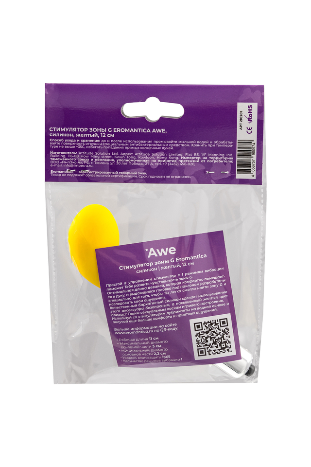 210201 Стимулятор точки G Eromantica Awe, силикон, желтый, 12 см