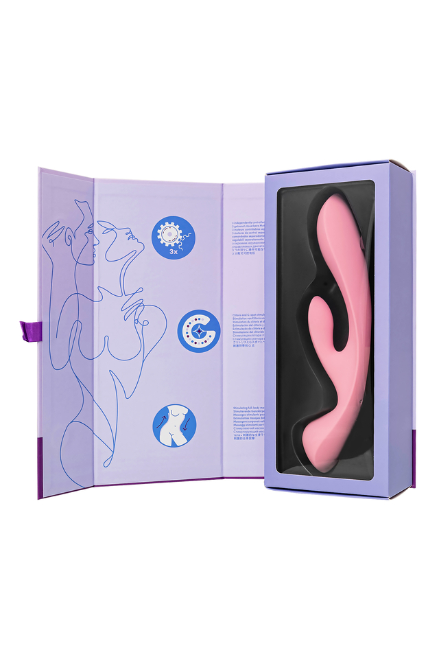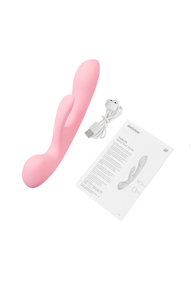Обрети удовольствие в тройном измерении с Satisfyer Triple Oh! С одной стороны игрушка выглядит как классический вибратор-кролик, а с другой стороны это миниатюрный ванд. Этот вибромассажер объединяет в себе двойную стимуляцию твоих "горячих точек" с чувственным массажем всего тела, а каждая функция управляется независимо. Тройная Мощь: С 3 моторами, Triple Oh дарит тебе полную мощность удовольствия. Три моторчика гарантируют бесконечные варианты стимуляции точки G и клитора, сопровождаемые массажем. Удовольствие 2 в 1: Это не просто массажер-ванд, но и вибратор-кролик в одном устройстве. Одновременная стимуляция клитора и точки G дарит наивысшее наслаждение и яркие продолжительные оргазмы. Интенсивный массаж: Наслаждайся чувственным массажем всего тела, особенно эффективным на чувствительных зонах. Объемная головка, имитирующая ванд, особенно эффективно массирует любые участки тела и дарит обширное расслабление. А заостренный кончик позволяет достигать точечного наслаждения. Разнообразие программ: Каждый из 3 моторов предлагает целых 12 программ вибрации, даря тебе множество вариантов для наслаждения. Идеальная адаптация: Гибкость игрушки и точечно заостренная головка обеспечивают комфорт и точность в использовании. И вагинальная, и клиторальная части благодаря подвижности подстраиваются под любые анатомические особенности женского тела для наивысшего наслаждения в интимные моменты. Водонепроницаемая изысканность: Triple Oh обладает степенью защиты IPX7, позволяя тебе наслаждаться им даже в воде. Проводи релаксацию в ванне или душе без ограничений. Безопасный и нежный: Изготовленный из мягкого шелковистого силикона, он безопасен для твоего тела и приятен к прикосновению. Абсолютно гипоаллергенный материал адаптируется к температуре твоего тела. Бесконечные возможности: С Satisfyer Triple Oh ты можешь быть уверена в бескрайних возможностях удовольствия. А если энергия угаснет, подзаряди его легко с помощью прилагаемого USB-кабеля. Обрети тройную гармонию удовольствия с Satisfyer Triple Oh! Особенности: 3 мощных автономных мотора Гибкий вибратор подстраивается под анатомию индивидуально Многовариантность использования для интимного удовольствия и для расслабляющего массажа Эргономичная и стильная форма По 12 режимов вибрации для каждого мотора. Нежный голубой цвет и мягкий, эластичный силикон без запаха, без аллергенов и вредных для здоровья веществ. Возможность использовать игрушку в ванной и душе благодаря полной водонепроницаемости (до 30 минут на глубине до 1 метра) – IPX7. Перезаряжаемый, магнитный USB-кабель.