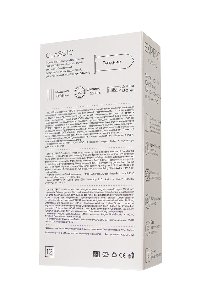 916/1 Презервативы EXPERT Classic Germany 12шт +(3 бесплатно)., классические