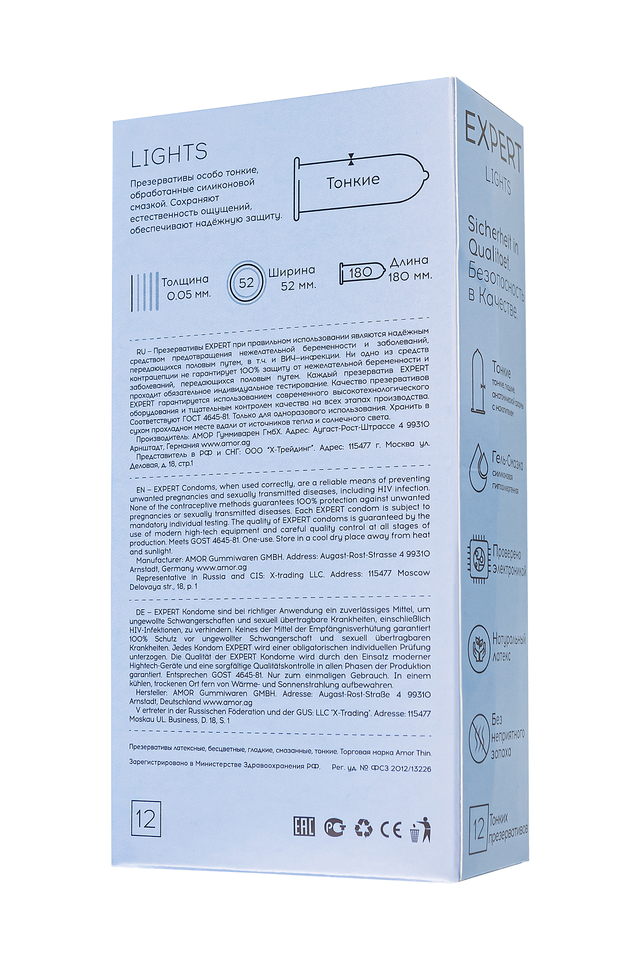 919/1 Презервативы EXPERT Lights Germany 12шт +(3 бесплатно), ультратонкие