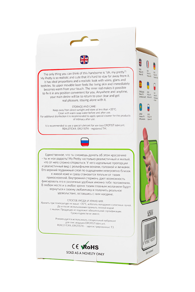 Встречайте My Pretty из коллекции My Babe от RealStick – ваш идеальный компаньон для интимных моментов. Этот аккуратный фаллоимитатор воплощает реализм с идеальными пропорциями, рельефными венами, натуральной головкой и яичками. Он создан для того, чтобы прикасаясь к нему, вы погружались в атмосферу настоящего контакта, словно к единственному в своем роде. С его длиной в 20 см и диаметром 3,5 см, My Pretty обещает полноценные несравненные ощущения. Внутренний стержень позволяет фиксировать игрушку в удобных для вас положениях, удовлетворяя ваши индивидуальные предпочтения. Вагинальный или анальный секс – выбор за вами, но не забудьте воспользоваться презервативом, если хотите побаловать себя анальными ласками. Упругая мошонка с присоской служат надежным ограничителем. Независимо от времени суток и места, вы будете мечтать вернуться к My Pretty, чтобы насладиться реальным удовольствием, оставшись с ним наедине. Реалистичный материал TPE, пластичность и быстрое принятие температуры тела делают My Pretty идеальным выбором. А его мощная присоска позволяет закрепить игрушку на любой ровной поверхности, открывая новые грани удовольствия. Дополнительный бонус - возможность использования в ванне или душе.Чтобы игрушка радовала вас долго, используйте лубрикант на водной основе и пудру для игрушек. Материал - TPE Оттягивающаяся кожа Общая длина 20 см