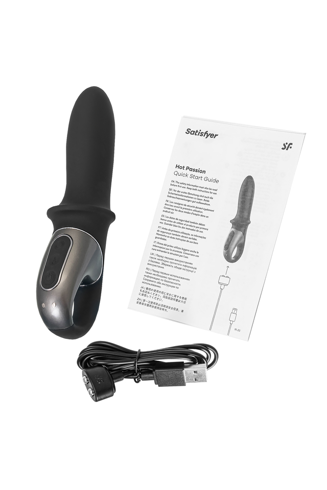 Приготовьтесь к жарким ощущениям с анальным вибратором Hot Passion от Satisfyer! Этот согревающий вибратор создан, чтобы привнести в вашу интимную жизнь новые грани удовольствия. Неважно, какого пола вы или ваш партнер, этот универсальный девайс готов дарить удовольствие без границ. Его изогнутая форма, объемный стержень и округлый кончик призваны обеспечить максимальную стимуляцию точки P. Ощутите непреодолимые сексуальные волны, исследуя грани вашего возбуждения с помощью Hot Passion. Этот инновационный вибратор согревается до 39 градусов, обеспечивая реалистичные ощущения и усиленное кровообращение для еще более яркого удовольствия. Комфортный нагрев имеет благоприятное значение не только в моментах наслаждения, но и бесценную пользу для профилактического массажа простаты. Hot Passion также обладает возможностью стимулировать зону G, что делает его универсальным девайсом для исследования и достижения наивысшего наслаждения. Не забудьте тщательно очистить и продезинфицировать вибратор, если вы хотите использовать его вагинально после анальной стимуляции. Рекомендуется использовать презерватив. Hot Passion оснащен мощным мотором и 12 предустановленными режимами вибрации. Изысканный дизайн, плавные изгибы и эргономичная форма обеспечивают легкое проникновение. Hot Passion удобно лежит в руке благодаря ручке-кольцу и управляется кнопкой на корпусе. Кроме того, Hot Passion имеет дистанционное управление. Испытайте удовольствие по-настоящему при помощи телефона через приложение Satisfyer Connect, доступное на Android и iOS. Создавайте собственные уникальные режимы вибрации, существенно расширив возможности предустановленных режимов. Девайс способен вибрировать даже в такт музыке. Satisfyer Connect не имеет границ – передавайте управление удовольствием партнеру даже на большом расстоянии. Шелковистое силиконовое покрытие — фирменный знак Satisfyer, тактильно нежный и приятный на ощупь, он быстро адаптируется к температуре вашего тела. Вибратор водонепроницаем, что позволяет вам наслаждаться им в любом месте. С его рабочей длиной 9 см и диаметром 3,4 см, Hot Passion обеспечивает комфортное использование и уникальный оргазмический опыт и для мужчин, и женщин. Насладитесь гармонией и новыми ощущениями благодаря мягкому силикону, приятному для вашей кожи, и водонепроницаемому дизайну, который дарит свободу экспериментировать в любом месте. Откройте для себя новые стороны удовольствия с Satisfyer Hot Passion. Особенности: Функция нагрева до 39°C, обеспечивающая реалистичную и пикантную стимуляцию. Мощный мотор и независимое управление нагревом Удобная ручка-кольцо и эргономичная форма 12 режимов вибрации и неограниченное количество режимов в приложении Satisfyer Connect с подключением через Bluetooth. Современный дизайн и нежный, эластичный силикон без запаха, без аллергенов и вредных для здоровья веществ. Водонепроницаемый (IPX7) Перезаряжаемый, магнитный USB-кабель.