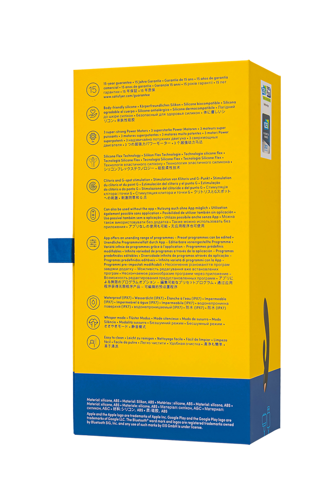 Позвольте себе тройной заряд энергии и наслаждения с вибратором Double Flex от Satisfyer. Этот кролик с тремя сверхмощными моторами погружает в мир одновременной стимуляции точки G и клитора. Гибкий Double Flex легко подстраивается под вашу анатомию, создавая уникальный контур, благодаря технологии Silicone Flex. Клиторальный отросток разделен на два ушка, которыми он обнимает клитор и дарит захватывающее удовольствие половым губам. Вариативность использования радует разнообразием – клиторальные и вагинальный отростки могут работать в разных ритмах. В вашем распоряжении 12 предустановленных режимов вибрации. Испытайте удовольствие по-настоящему с бесплатной функцией управление при помощи смартфона с поддержкой Bluetooth через приложение Satisfyer Connect, доступное на Android и iOS. Создавайте собственные уникальные режимы вибрации, существенно расширив возможности предустановленных режимов. Девайс способен вибрировать даже в такт музыке. Satisfyer Connect не имеет границ – передавайте управление наслаждением партнеру даже на большом расстоянии. Плавные изгибы и эргономичная форма обеспечивают легкое проникновение. Double Flex удобно лежит в руке и радует своим стильным и элегантным дизайном. Шелковистое силиконовое покрытие — фирменный знак Satisfyer, тактильно нежный и приятный на ощупь, он быстро адаптируется к температуре вашего тела. Длина вагинальной части 15,5 см, а диаметр – 3,4 см, что делает кролика идеальным вариантом для первой игрушки. Ощутите все прелести влажных приключений, ведь благодаря водонепроницаемой оболочке IPX7 Double Flex не только легок в уходе, но и безопасен для использования в ванне и душе. Чтобы получить максимум удовольствия и сохранить материал в наилучшем виде, рекомендуется пользоваться качественной смазкой на водной основе. После использования обязательно очищайте вибратор теплой водой со специальными бактерицидными спреями для интимных товаров. Особенности: 3 мощных мотора и вибрация по всей игрушке 2 клиторальных отростка 12 режимов вибрации и неограниченное количество режимов в приложении Satisfyer Connect с подключением через Bluetooth. Стильный современный дизайн и нежный, эластичный силикон без запаха, без аллергенов и вредных для здоровья веществ. Водонепроницаемый (IPX7) Идеальный вариант для первой игрушки Перезаряжаемый, магнитный USB-кабель. 15 лет гарантии от производителя.