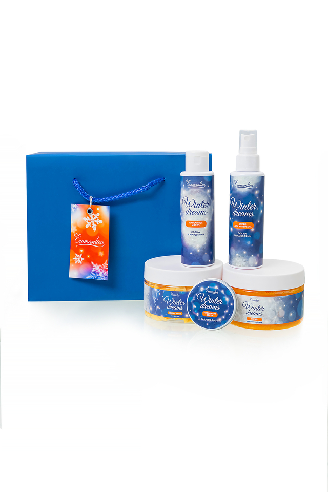 Комплиментарный набор косметики с феромонами, включающий в себя сразу 3 этапа зимнего волшебства: Спрей для интерьера с ароматом сосны и мандарина для создания новогодней атмосферы. Средство на водной основе не оставит следов на предметах мебели и интерьера, постельном белье и портьерах. Быстро впитывается и надолго сохраняет хвойно-цитрусовый аромат. Обновляющий сахарный скраб для тела с ароматом корицы и мандарина и тающий крем-суфле для тела с ароматом мандарина для бережной заботы о красоте вашей кожи. Частички сахара деликатно очищают кожу, улучшают кровообращение и стимулируют клеточное обновление. Ценные масла: ши, кокоса, оливы, персика и рапса в составе средств устроят настоящую бьюти-перезагрузку вашему телу, насытят кожу витаминами и минералами, сделают ее поверхность гладкой и шелковистой. Массажное масло с ароматом сосны и мандарина и массажная свеча с ароматом мандарина для теплых чувственных прикосновений и расслабляющего массажа. Мы собрали все эти средства в подарочную упаковку с пожеланием! Позвольте новогоднему волшебству прийти в вашу жизнь и сделать каждый день маленьким праздником!