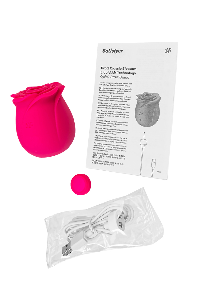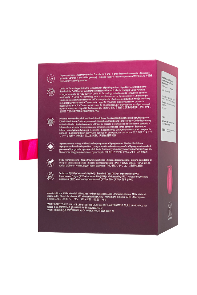 Погрузитесь в мир интимных чувств с вакуумно-волновым клиторальным стимулятором Pro 2 Classic Blossom от знаменитого Satisfyer. Это не просто интимная игрушка, а настоящий путь к наслаждению, где инновации сочетаются с романтикой. Два способа удовольствия: игрушка имеет две насадки, каждая из которых предлагает свой уникальный вид наслаждения. Обычная насадка приглашает вас на танец бесконтактной стимуляции Air-Pulse, тогда как вторая насадка с тонкой мембраной, благодаря технологии Liquid Air, подарит чувственное ощущение пульсирующей струи воды. Мощность и 11 разнообразных программ Сногсшибательные возможности управления интенсивностью на 11 уровнях для индивидуального выбора в зависимости от предпочтений, чтобы каждый момент был насыщен удовольствием. Оригинальный дизайн: элегантный бутон розы, раскрывающий свои лепестки, обещает не только визуальное, но и тактильное удовлетворение. Satisfyer Pro 2 Classic Blossom идеален как для индивидуальных развлечений, так и для разнообразия интимных моментов вдвоем. Этот интимный девайс идеально подойдет в качестве подарка близкому человеку и первой игрушки. Безопасный материал и водонепроницаемость: мягкий шелковистый силикон, абсолютно гипоаллергенный, адаптируется к температуре тела. Pro 2 Classic Blossom имеет уровень влагозащиты IPx7, что позволяет использовать его в воде. Заряжайте с помощью магнитного USB-кабеля, входящего в комплект, и наслаждайтесь мгновенным оживлением вашей радости Особенности: Мощный мотор и 11 режимов интенсивности Две насадки: для бесконтактной стимуляции - Air-Pulse и клиторальной стимуляции - Liquid Air Уникальный дизайн в виде бутона розы Эргономичная и стильная форма Насыщенный розовый цвет и мягкий, эластичный силикон без запаха, без аллергенов и вредных для здоровья веществ. Возможность использовать игрушку в ванной и душе благодаря полной водонепроницаемости (до 30 минут на глубине до 1 метра) – IPX7. Длина 6,7 см, высота 6,5 см, ширина 6,6 см. Перезаряжаемый, магнитный USB-кабель.