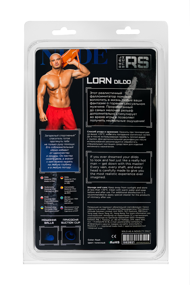 582021 Реалистичный фаллоимитатор RealStick Nude Lorn, PVC, телесный, 20 см