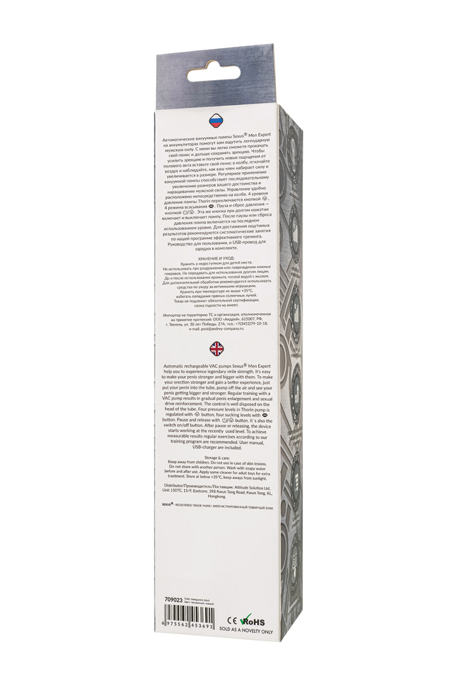 Погрузитесь в мир уверенности и легендарной силы с автоматической вакуумной помпой Thorin Sexus® Men из серии Expert! Это инновационное устройство создано, чтобы помочь вам достичь максимальных результатов в вашей сексуальной жизни. Прокачайте свою мужскую силу, продлите вашу эрекцию и получите новые ощущения от полового акта – просто вставьте ваш пенис в колбу, активируйте помпу и наблюдайте, как она создает вакуум, стимулируя кровоток и увеличивая размер вашего члена. Управление удобно расположено прямо на колбе, что делает использование помпы максимально простым и удобным. С 4 уровнями давления и 4 режимами всасывания, вы сможете настроить интенсивность и длительность тренировки под свои потребности. Регулярные тренировки с вакуумной помпой способствуют последовательному увеличению размеров вашего достоинства и наращиванию мужской силы. Для достижения ощутимых результатов рекомендуются систематические занятия по нашей программе эффективного тренинга. В комплекте с помпой вы получаете: насадку для помпирования из высококачественного силикона черного цвета насадку для мастурбации из нежного материала TPE телесного цвета руководство по использованию программу эффективного тренинга USB-провод для зарядки Откройте для себя новые возможности вашего тела с вакуумной помпой Thorin от Sexus® Men и перенесите вашу сексуальную жизнь на новый уровень! Регулярное использование вакуумной помпы Thorin от Sexus® Men позволяет: сделать эрекцию более стабильной, крепкой и продолжительной последовательно увеличить длину и диаметр полового члена, делая его более внушительным повысить сексуальную выносливость и половое влечение поднять уверенность в своих возможностях и совершать новые сексуальные подвиги понизить вероятность образований аномальных фиброзных тканей