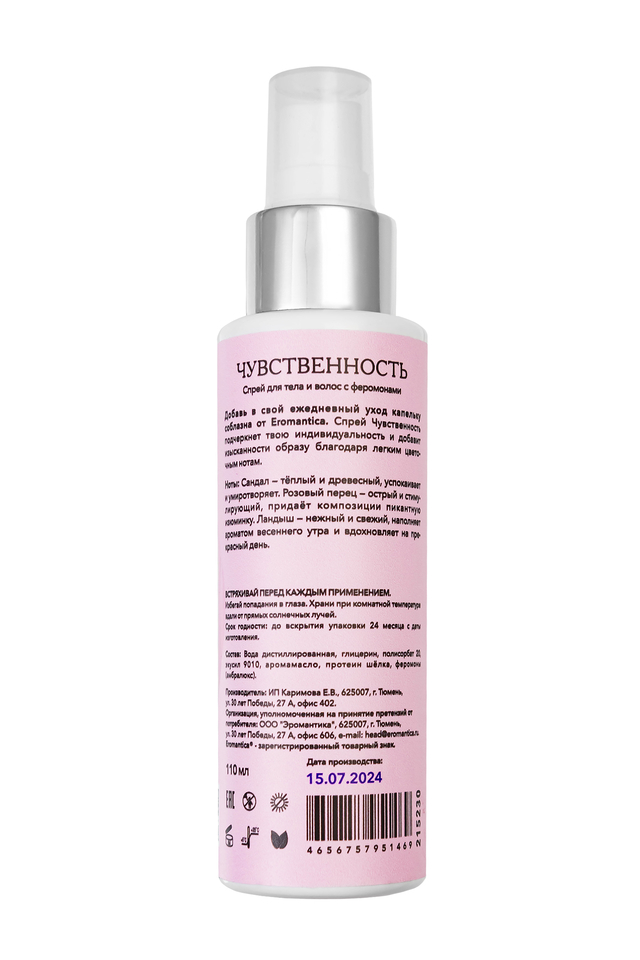 215230 Спрей для тела и волос Eromantica с феромонами Чувственность, 110 мл