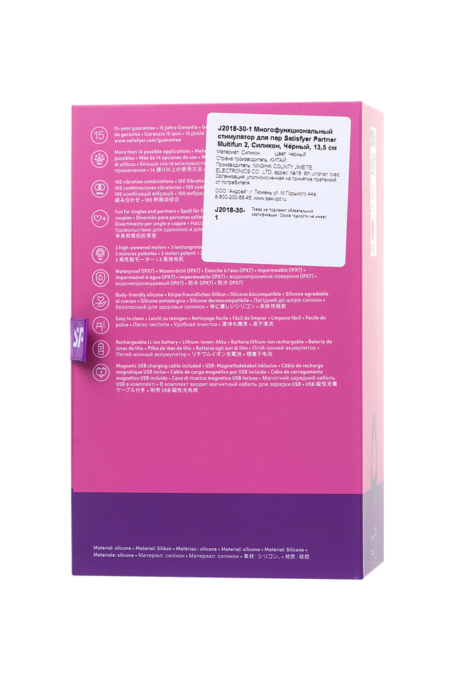 Многофункциональный стимулятор для пар Satisfyer Partner Multifun 2 придает интимной жизни буйство ощущений — он может заменить сразу 4 секс-игрушки, радует 14-ю вариантами применения и предлагает более ста сногсшибательных комбинаций, которые только и ждут, пока вы откроете их для себя. Неважно, будет ли Multifun 2 сверху, снизу или сбоку — этот соблазнительный умелец искусно встроится во все ваши любовные игры. Он равномерно распределит каждый из десяти режимов вибрации с помощью трех моторов с независимым управлением и с легкостью синхронизируется под ваше удовольствие. Попробуйте! Стимулятор для пар. Во время интимной сессии установите широкую сторону девайса на клитор, а «ушки» направьте на мошонку или член партнера. Волнующий массаж — лучшая прелюдия перед громким оргазмом. Массажер внешних эрогенных зон. Проведите трепещущими кончиками игрушки по шее, груди, соскам, бедрам, клитору, половым губам, мошонке, члену партнера и другим чувствительным местам. Увидите, они ответят на нежные импульсы мгновенным возбуждением. Вибратор для точки G. Пульсирующие «пальчики» Multifun 2 имеют идеальную форму и длину для пробуждения загадочной G-точки. Просто введите их внутрь и отдайтесь наслаждению. Игрушка для экспериментов в душе. Стимулятор обладает полностью водонепроницаемой поверхностью, с ним вы легко сможете взбодрить свой утренний душ или расслабиться в вечерней ванне с ароматной пенкой. Кольцо для члена. Наденьте девайс на член партнера. Массажер порадует плотным обхватом, а вибрация усилит эмоции от стимуляции и приведет к более яркой разрядке. Согласитесь, любовь — это когда всем делятся друг с другом, так почему бы не поделиться оргазмом от Multifun 2?